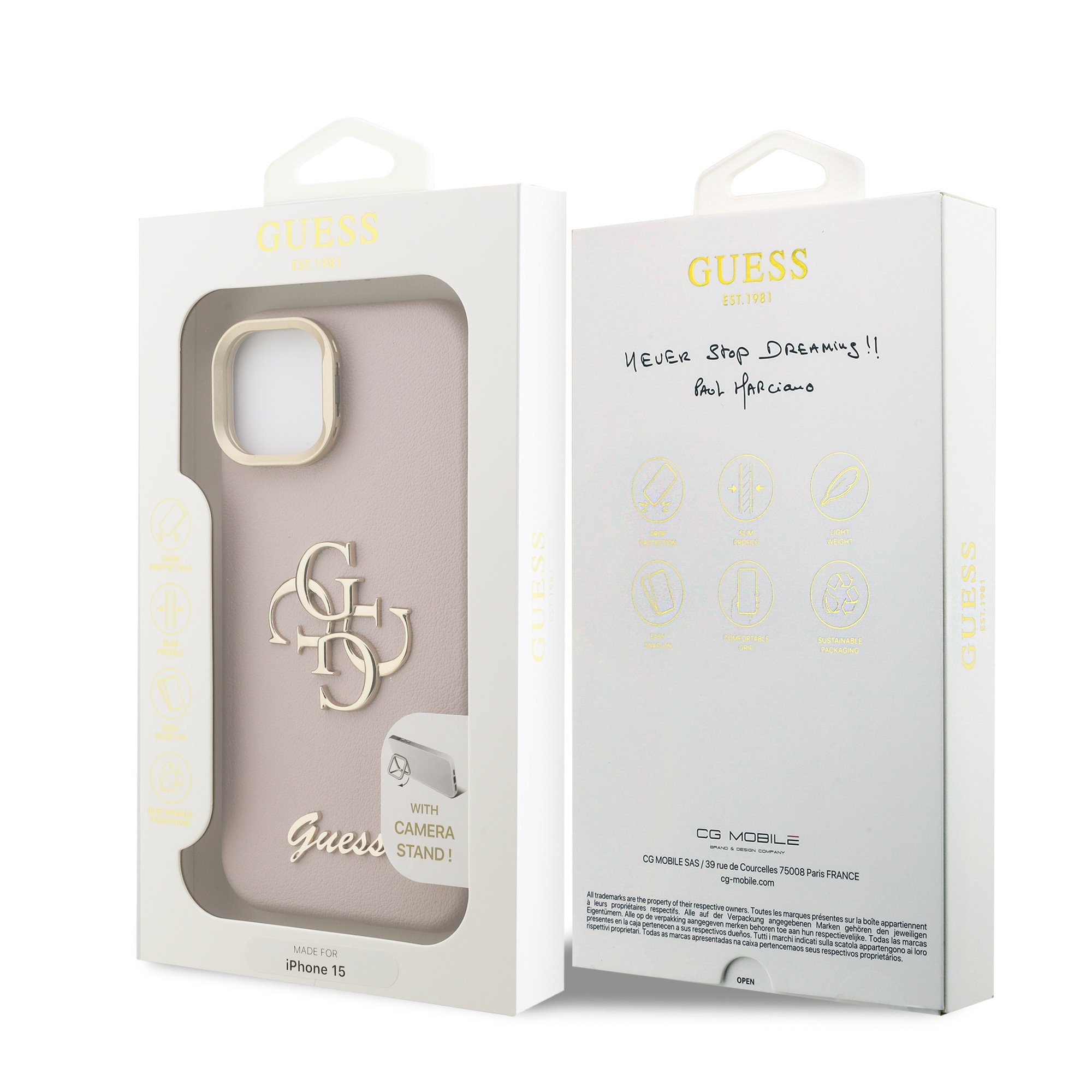 Guess 4G Logo with Camera Stand feature iPhone 15 case – Pink