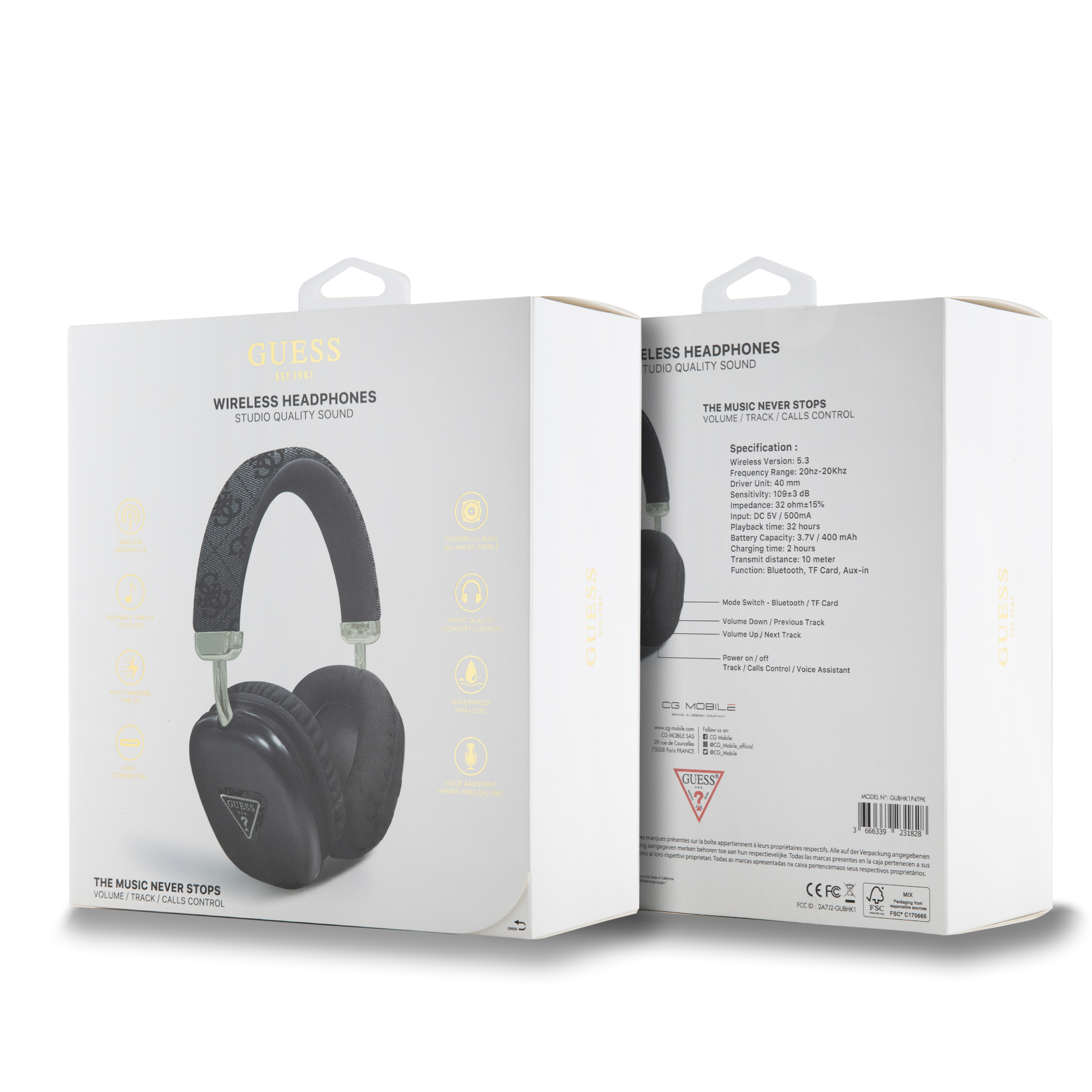 Guess PU Leather 4G Triangle Logo Wireless Headphones – Black