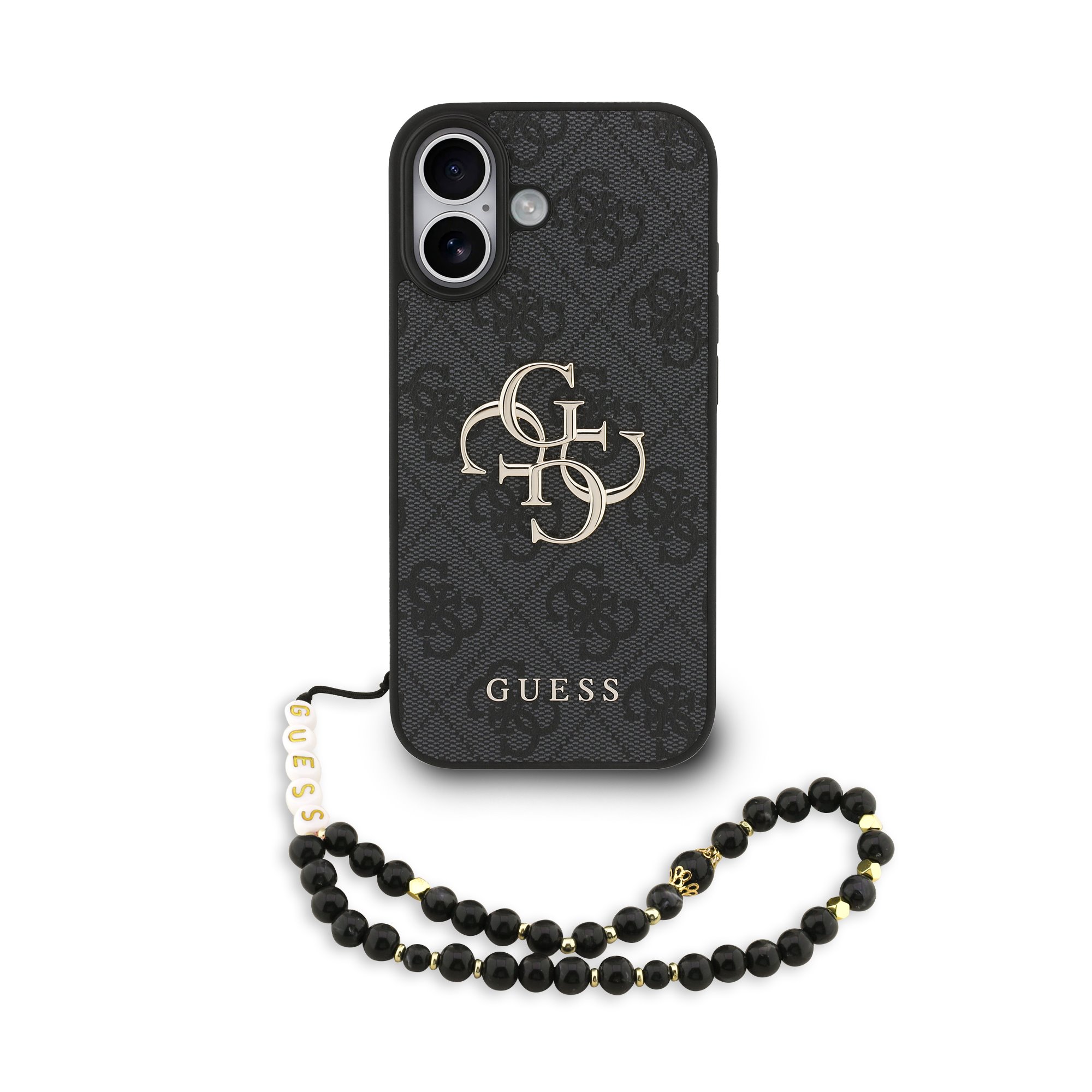 Guess 4G Metal Logo iPhone 17 case – With Wrist Strap – Black