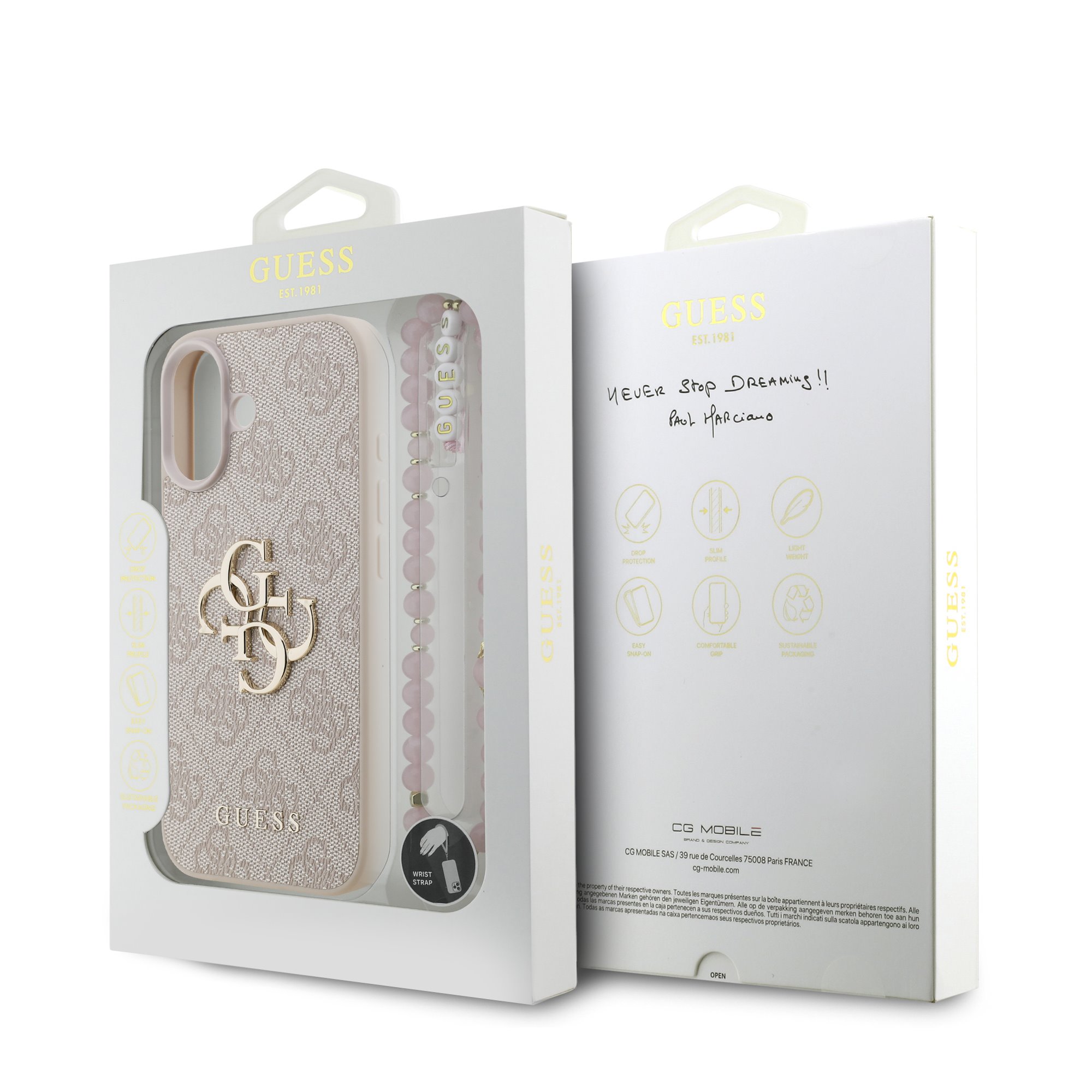 Guess 4G Metal Logo iPhone 17 case – With Wrist Strap – Pink