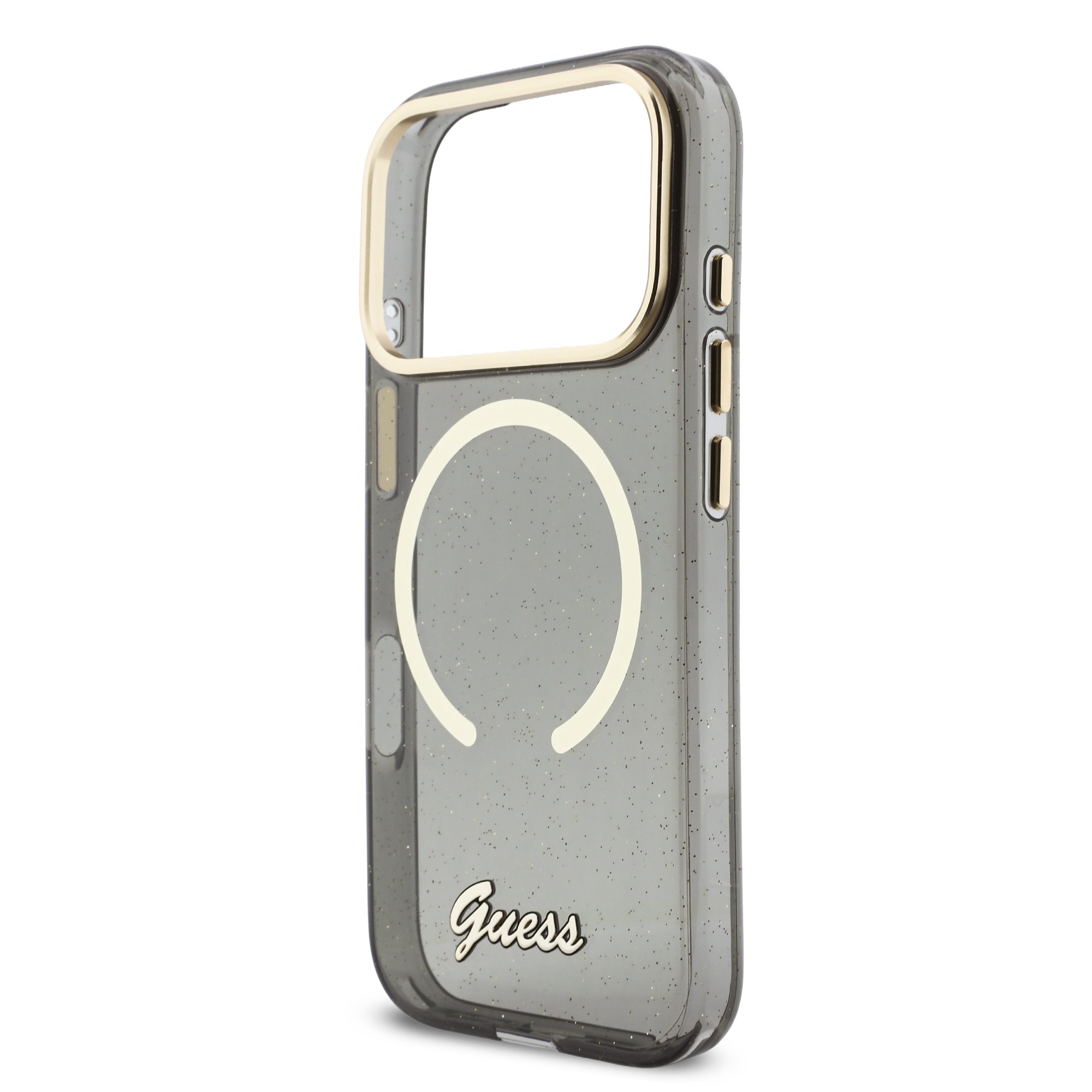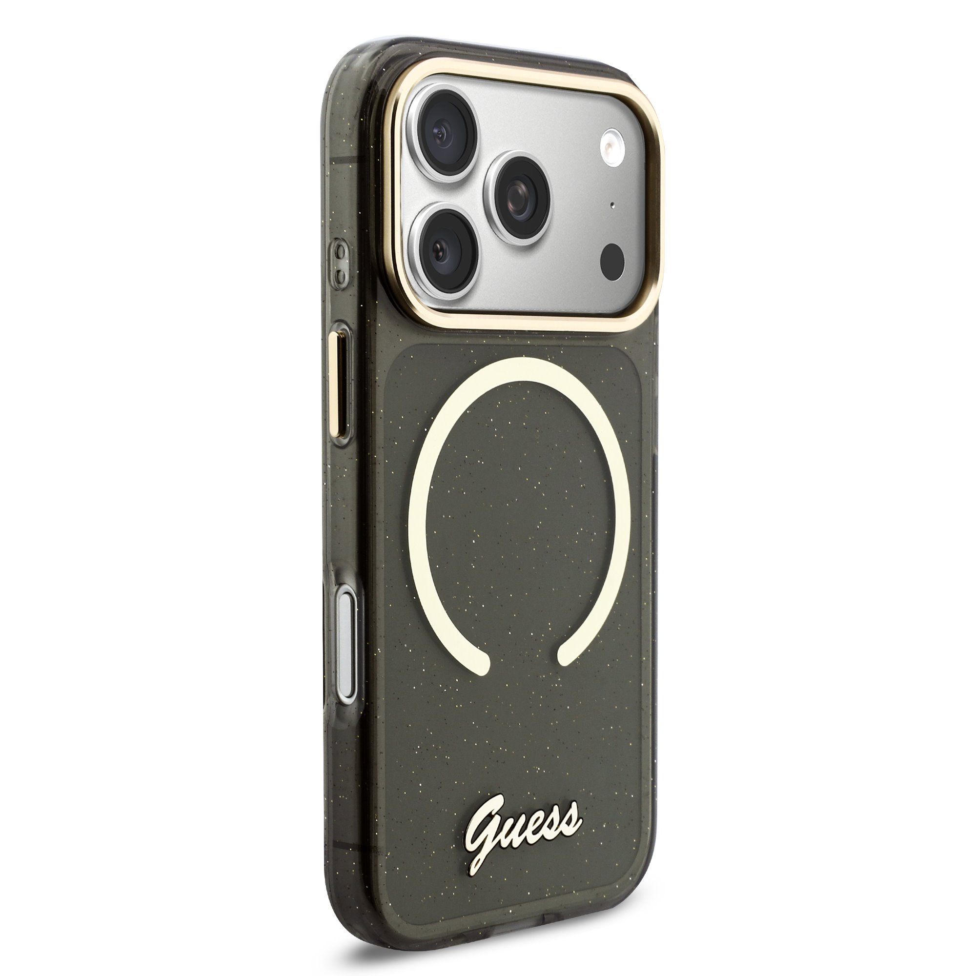 Guess IML Glitter Script Strap MagSafe Case iPhone 17 Pro – Black