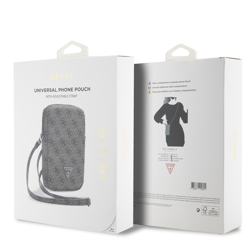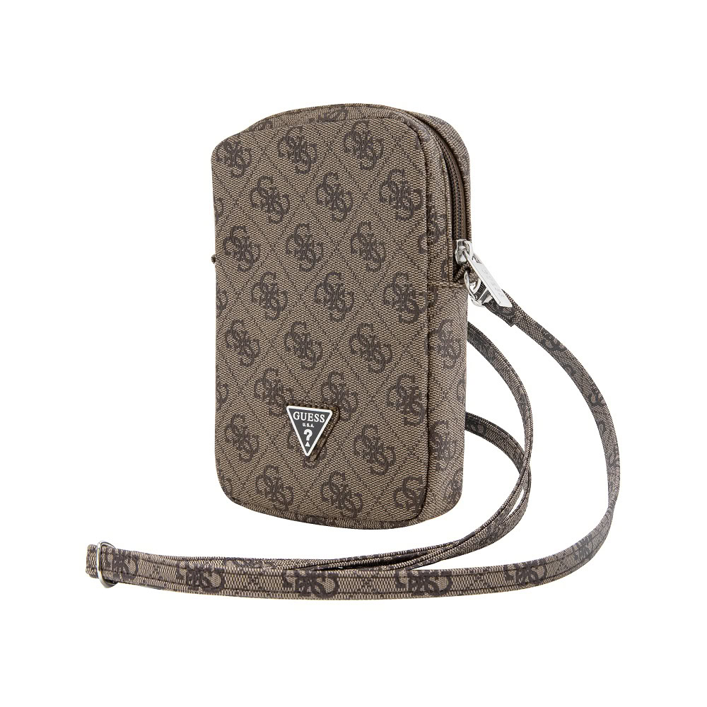 Guess PU 4G Triangle Logo Universal Phone Case with Zipper – Brown