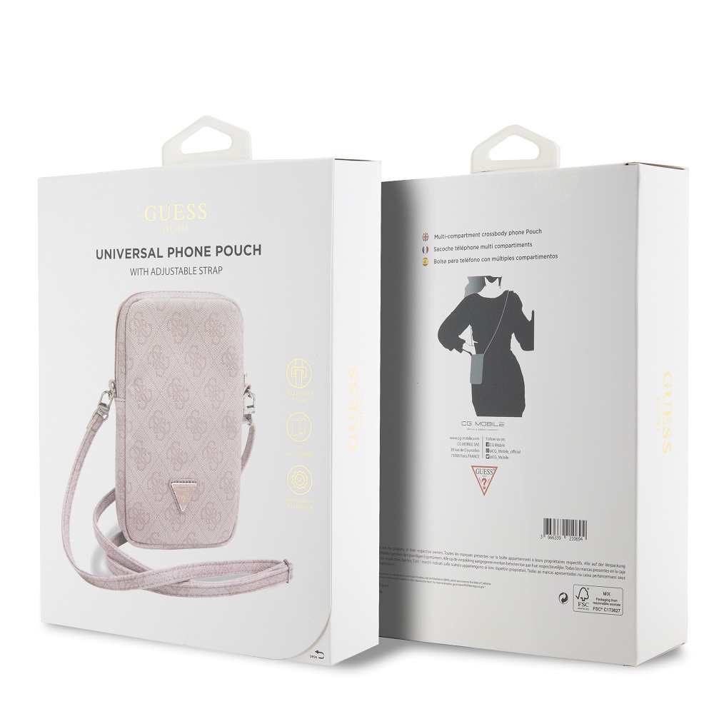 Guess PU 4G Triangle Logo Universal Phone Case with Zipper – Pink