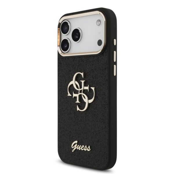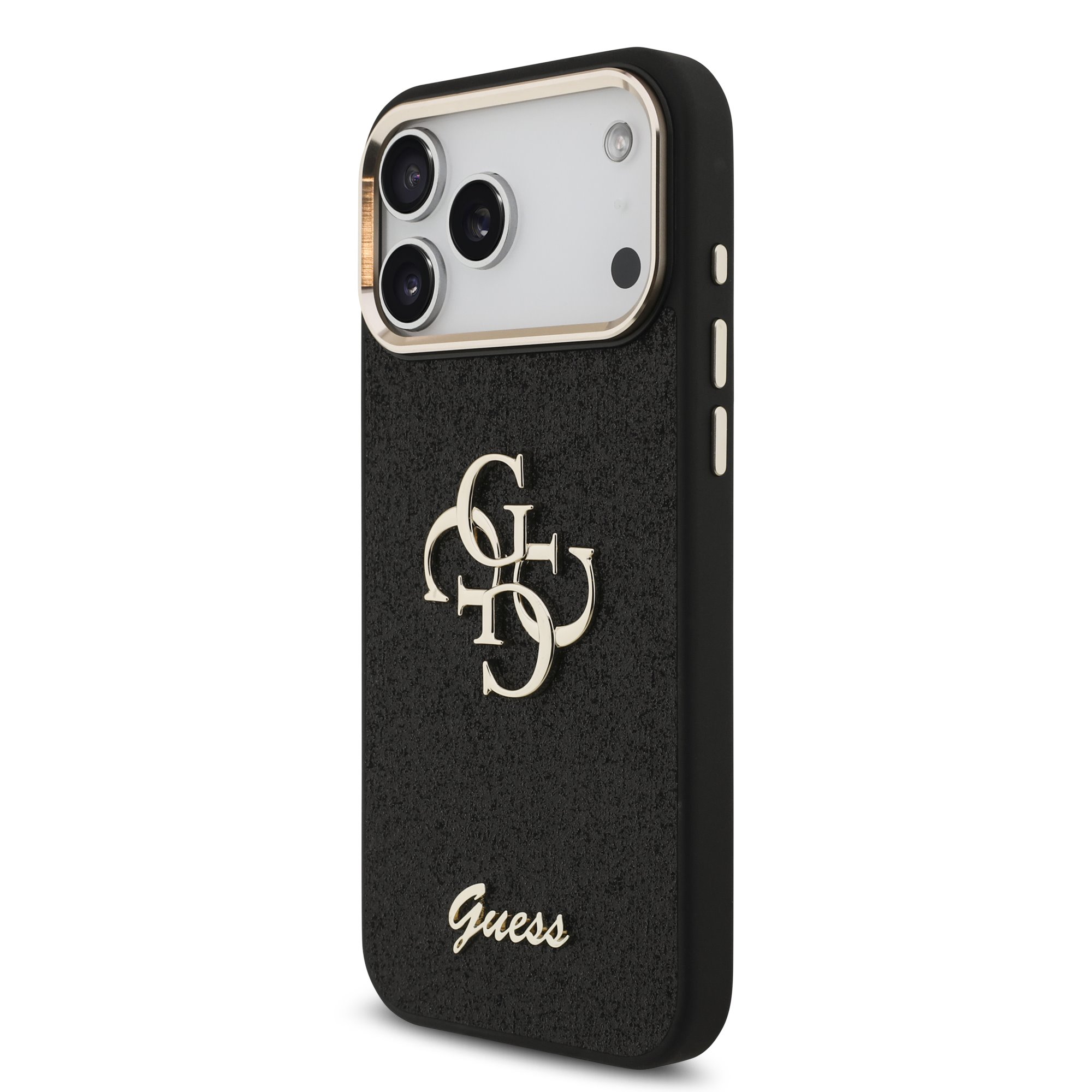 Guess PU Fixed Glitter 4G Metal Frame Case iPhone 17 Pro Max – Black