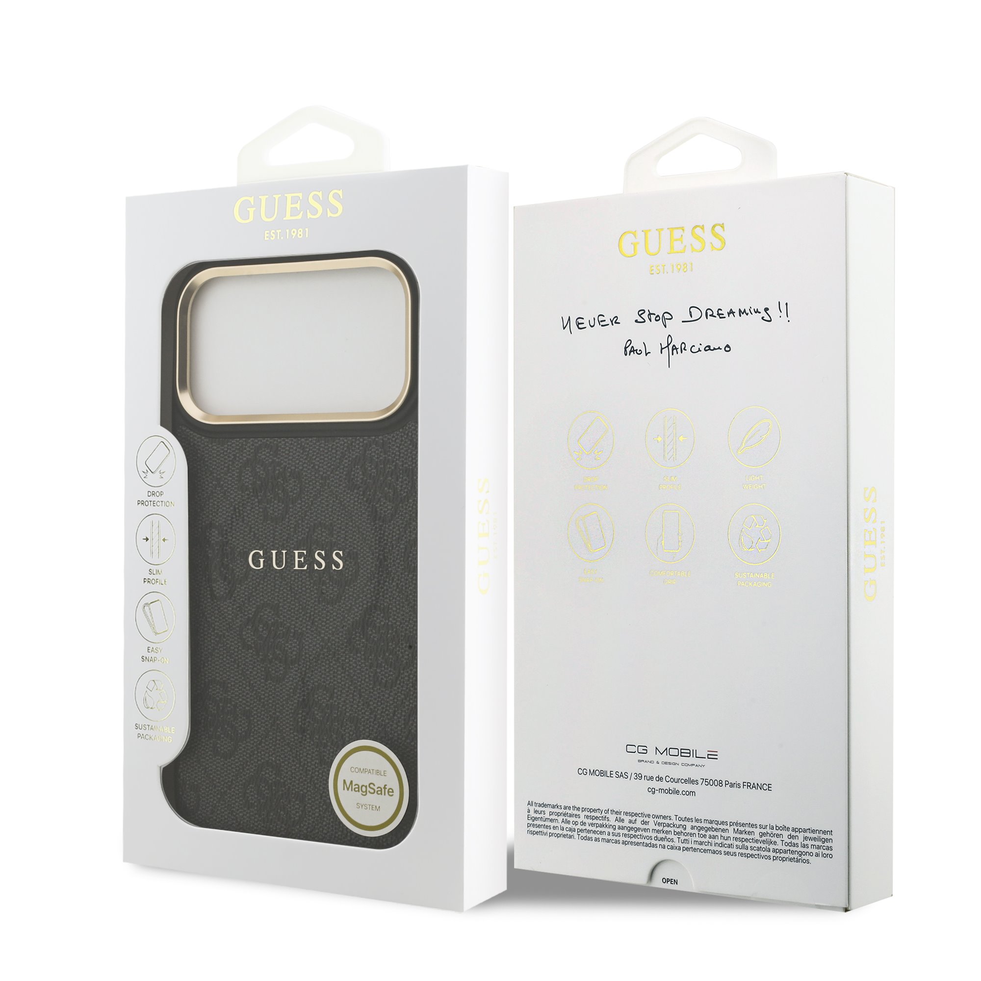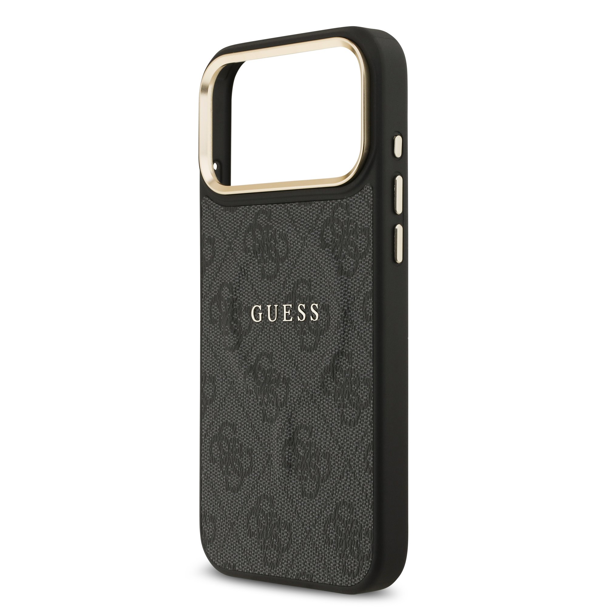 Guess PU Leather 4G Gold Frame MagSafe Case iPhone 17 Pro Max – Black