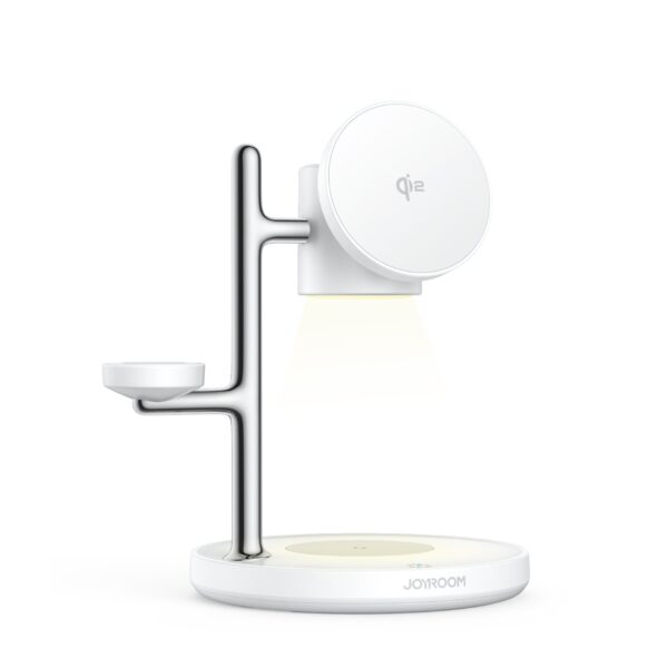 Joyroom 4-in-1 Qi2 wireless charger with night light (15W) for phone, smartwatch and earbuds – White