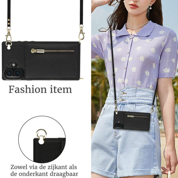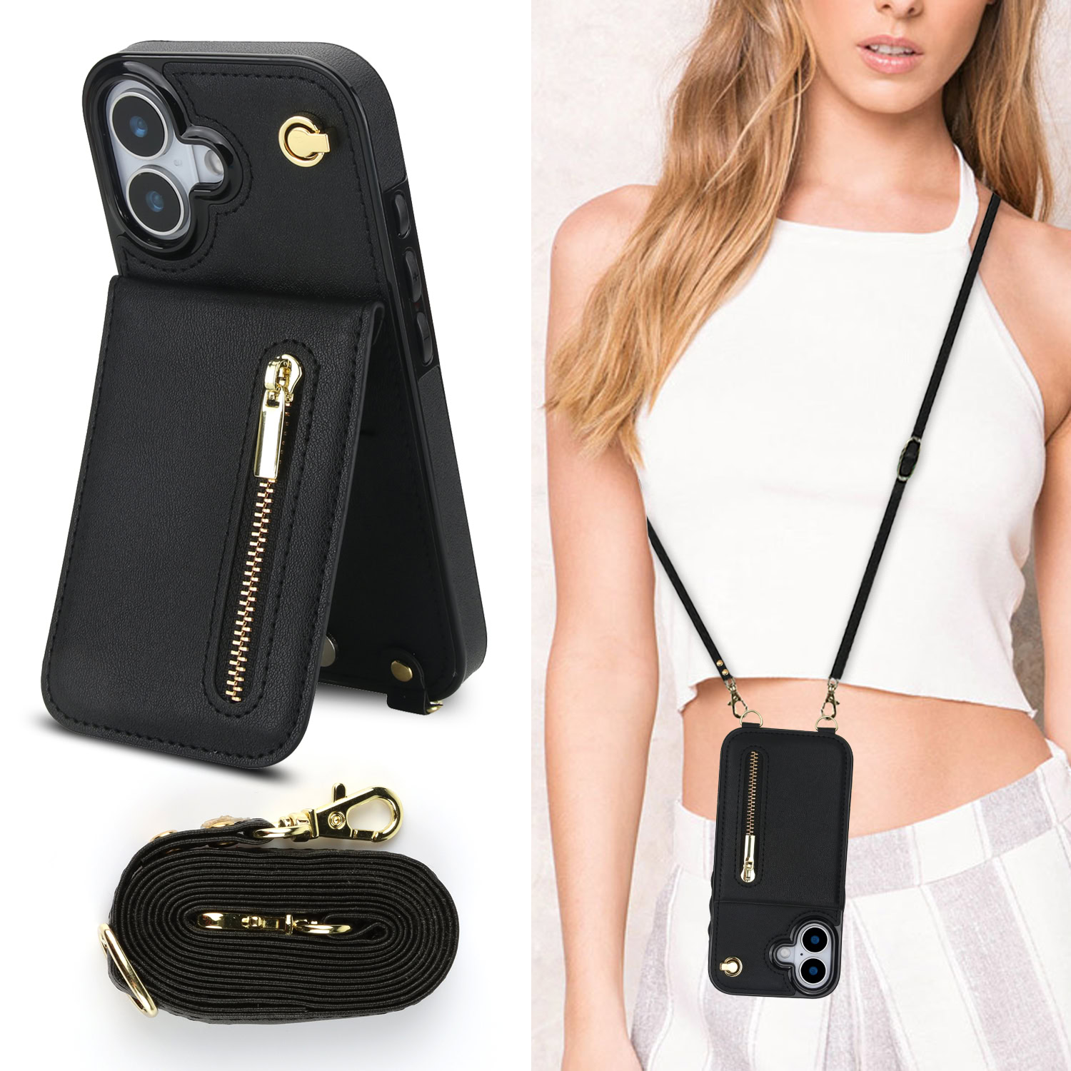 Solidenz Fashion Wallet case with lanyard iPhone 17 – Black