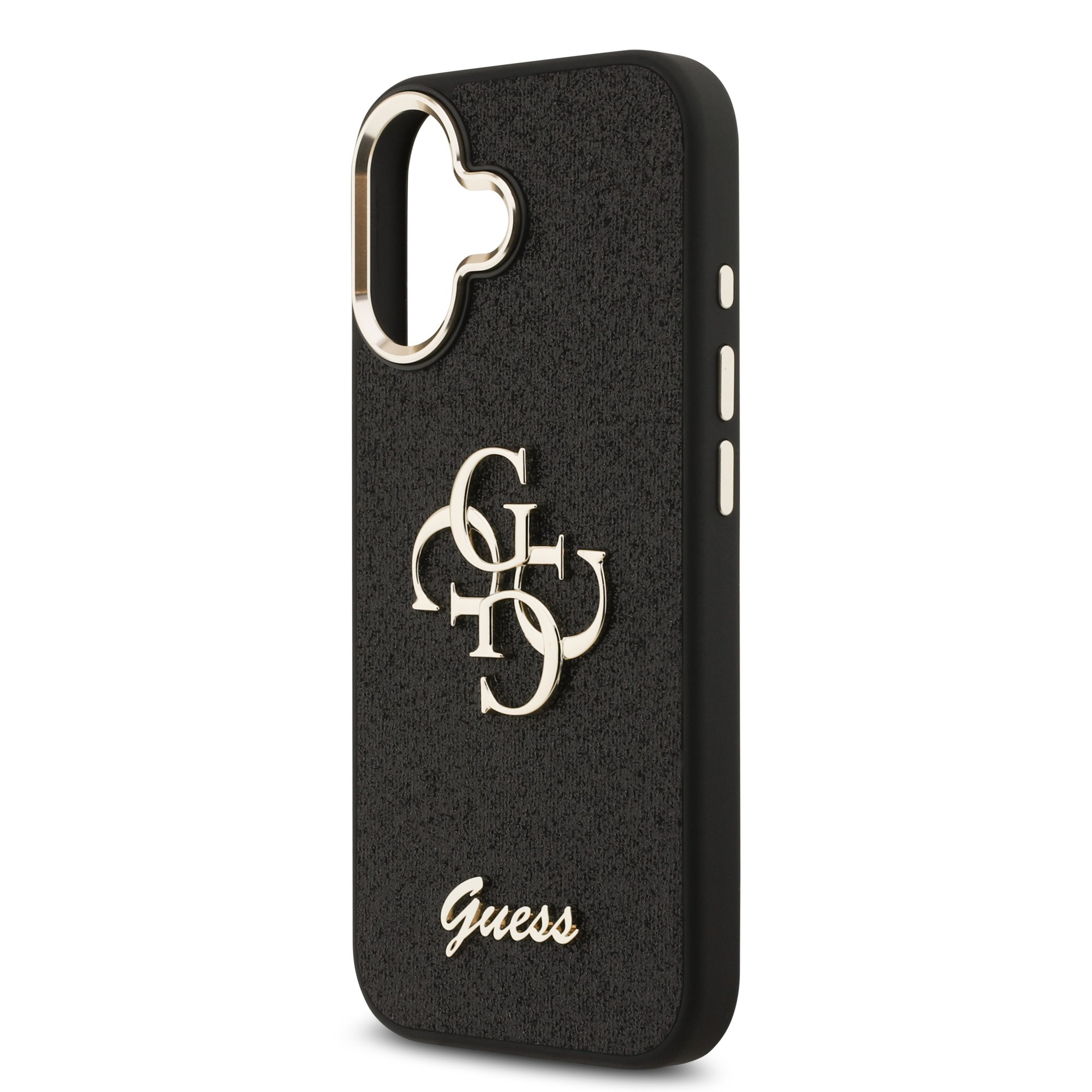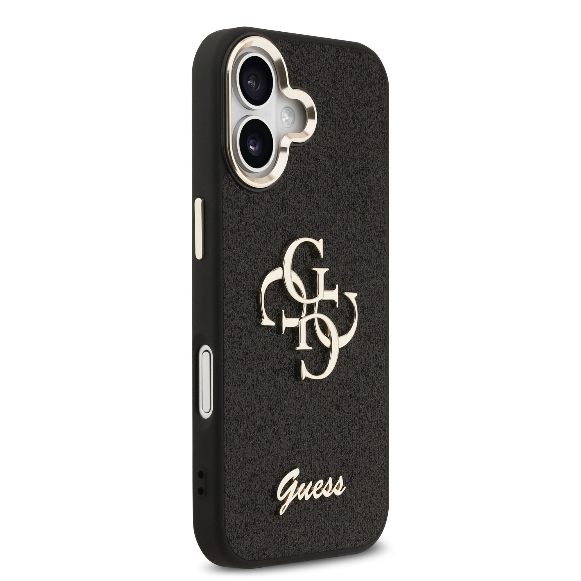 Guess PU Fixed Glitter 4G Metal Frame Hoesje iPhone 17 – Zwart