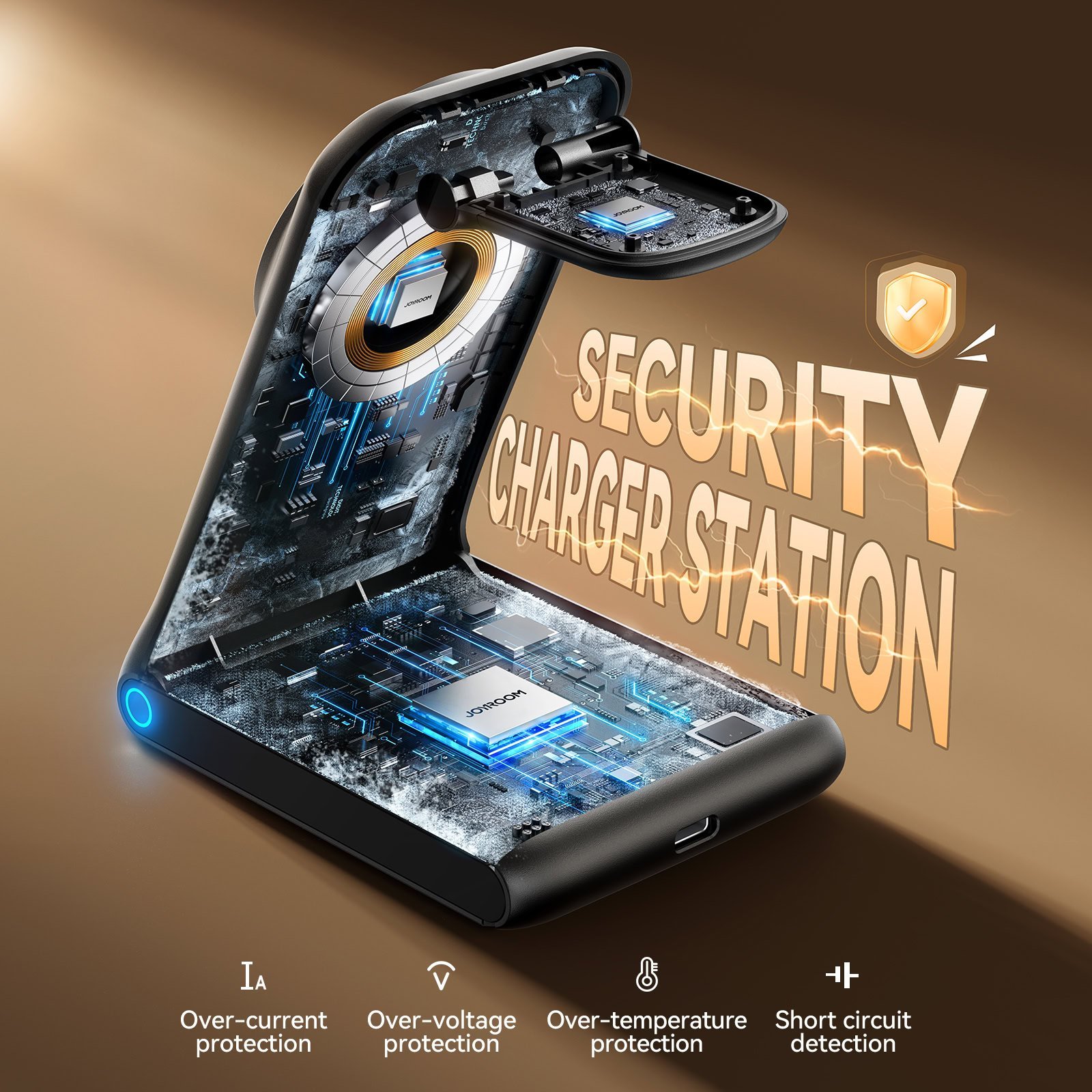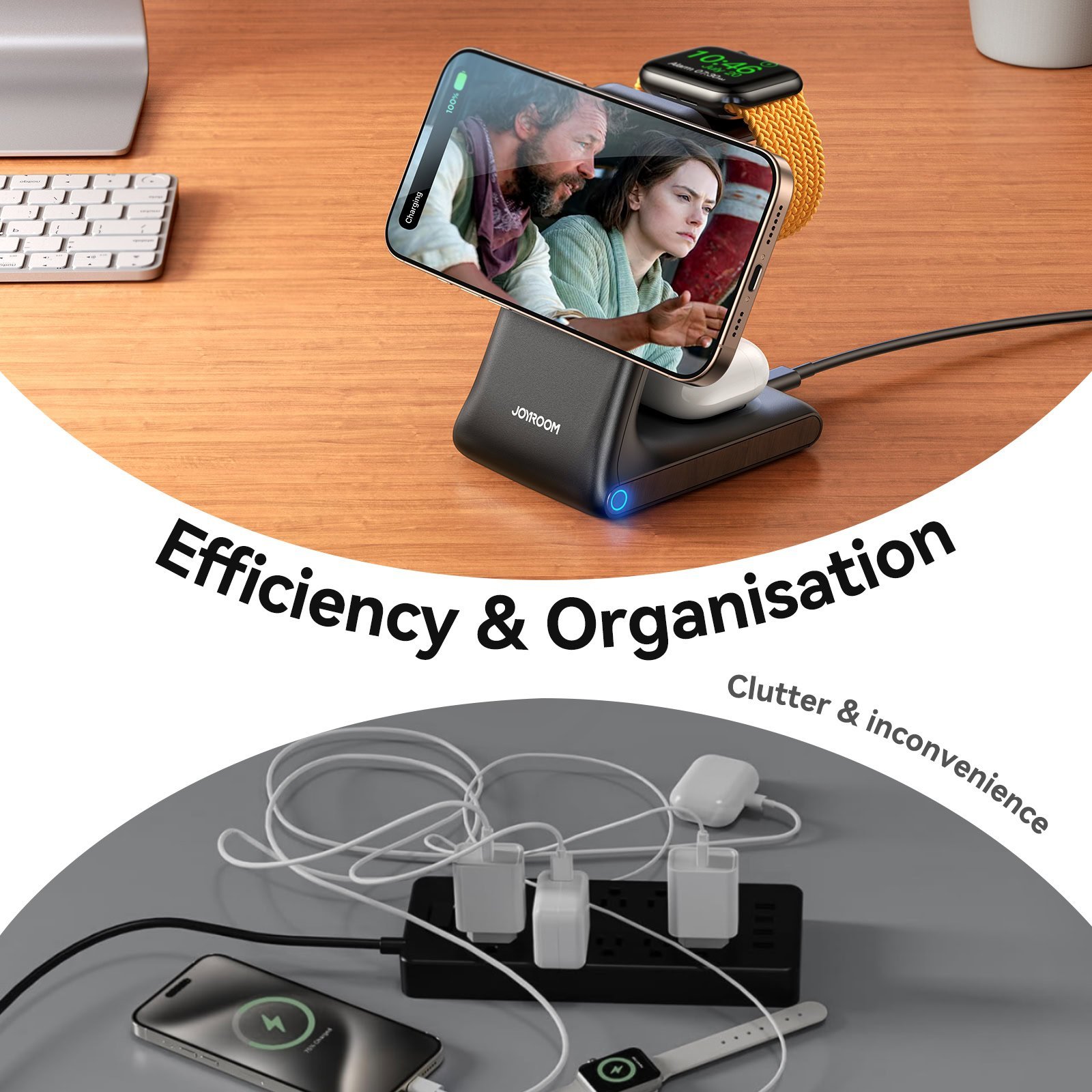 Joyroom 3-in-1 draadloze oplader met MagSafe standaard (15W) voor telefoon, oordopjes en smartwatch – Zwart