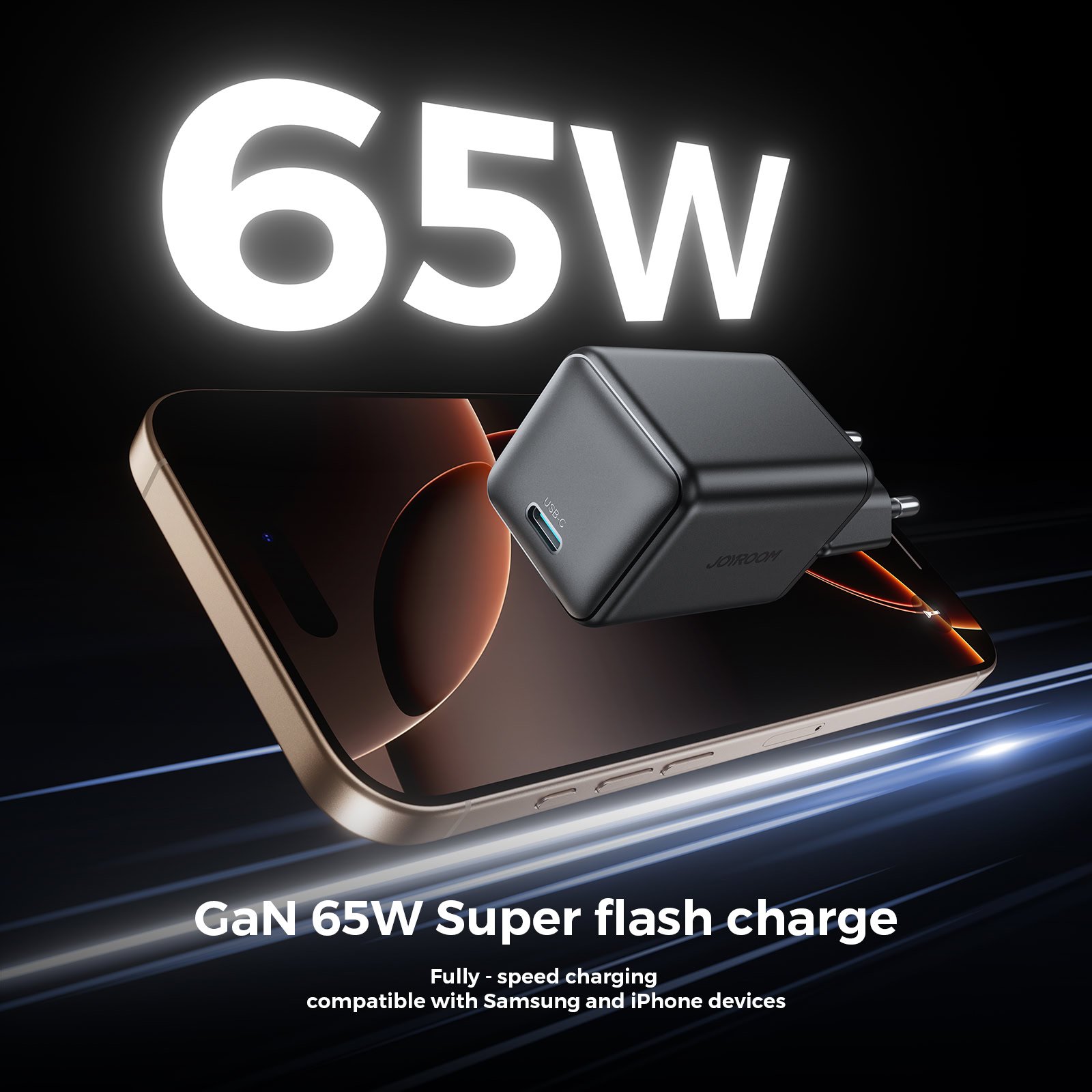 Joyroom GaN USB-C snellader 65W met Power Delivery en PPS – Zwart