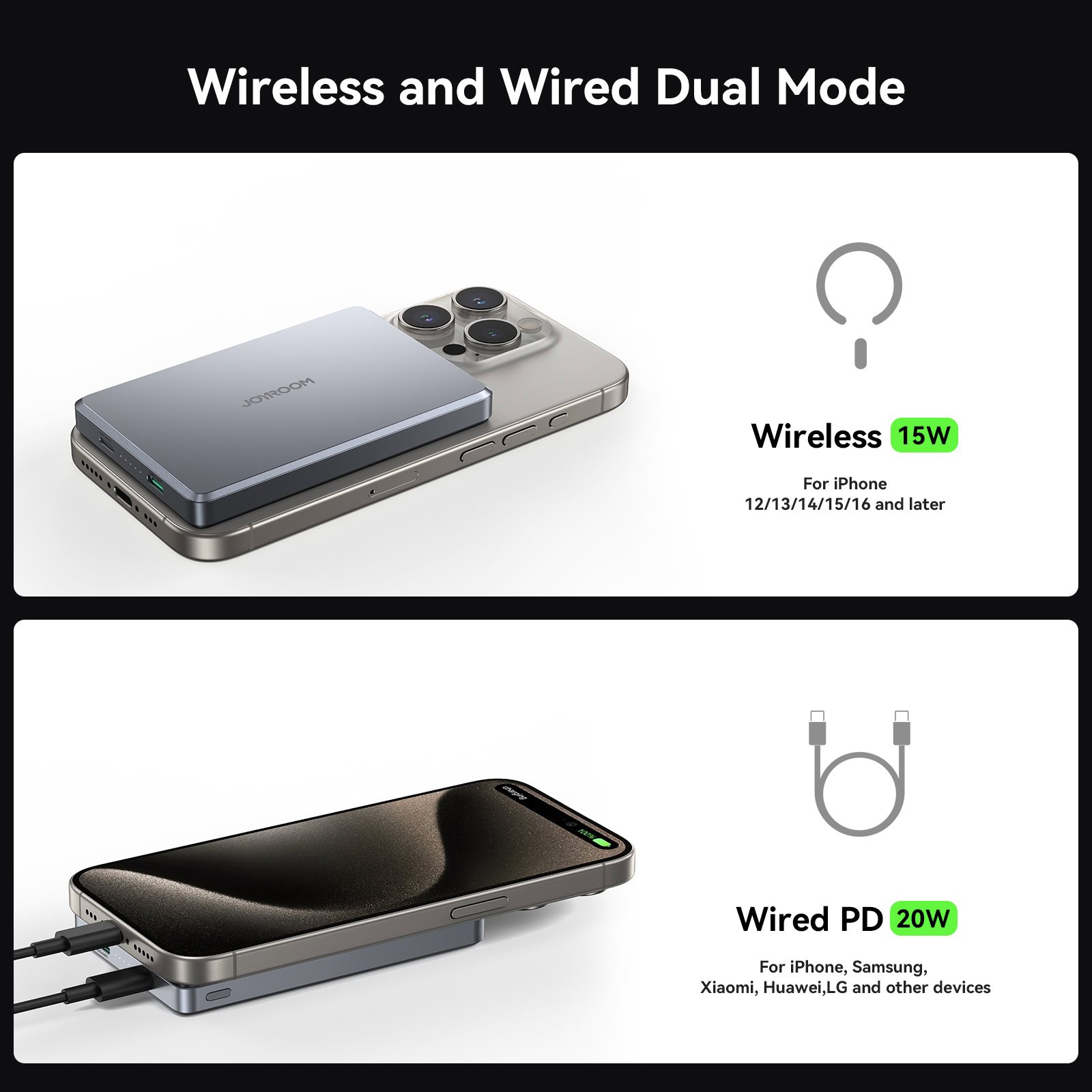 Joyroom ultradunne magnetische powerbank 10.000 mAh met 15W draadloos laden en 20W PD snelladen – Grijs
