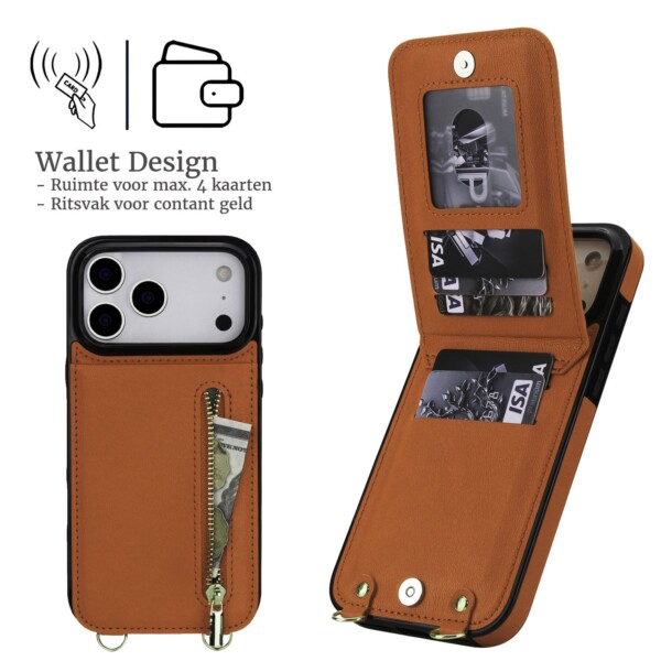 Solidenz Fashion Portemonnee hoesje met koord iPhone 17 Pro Max – Bruin