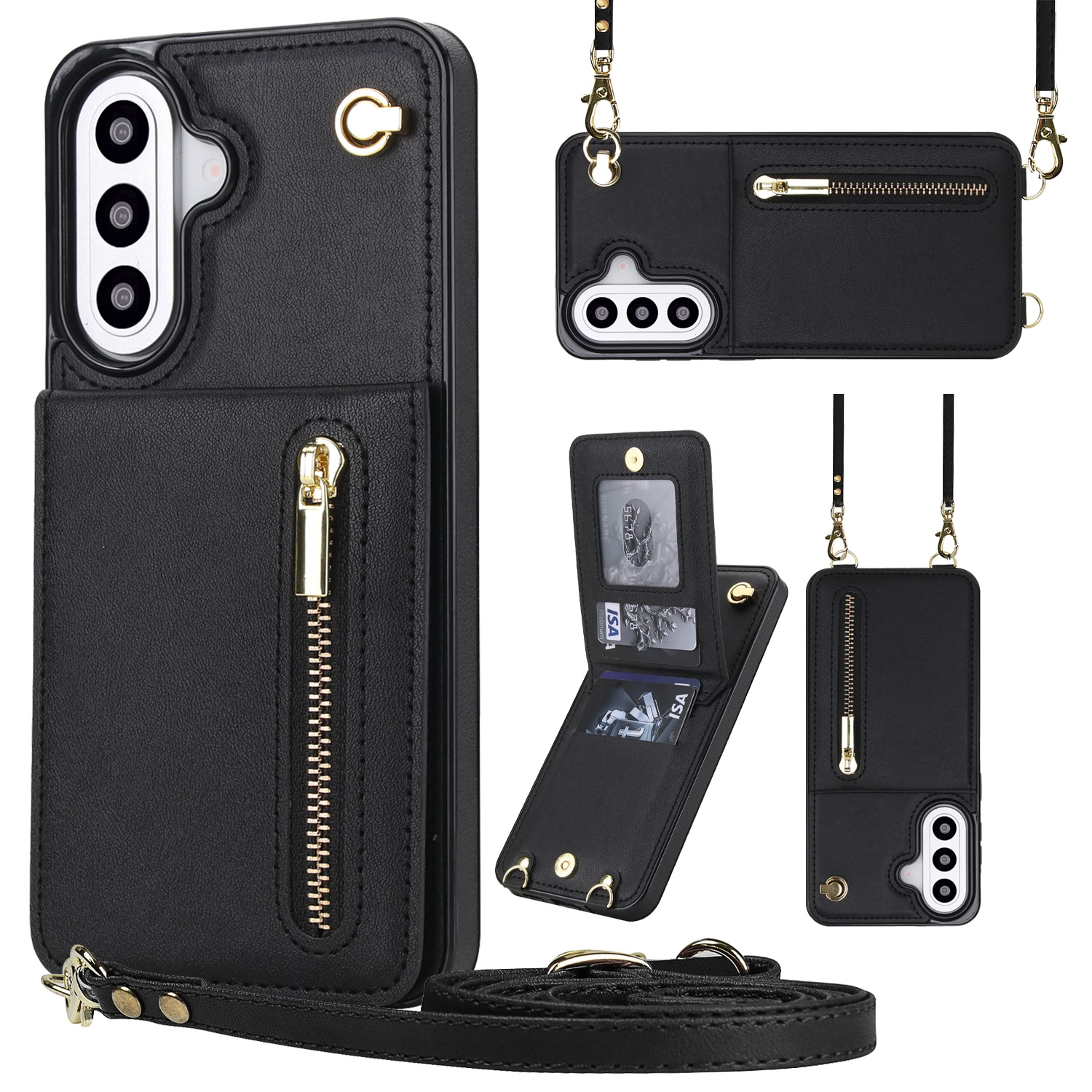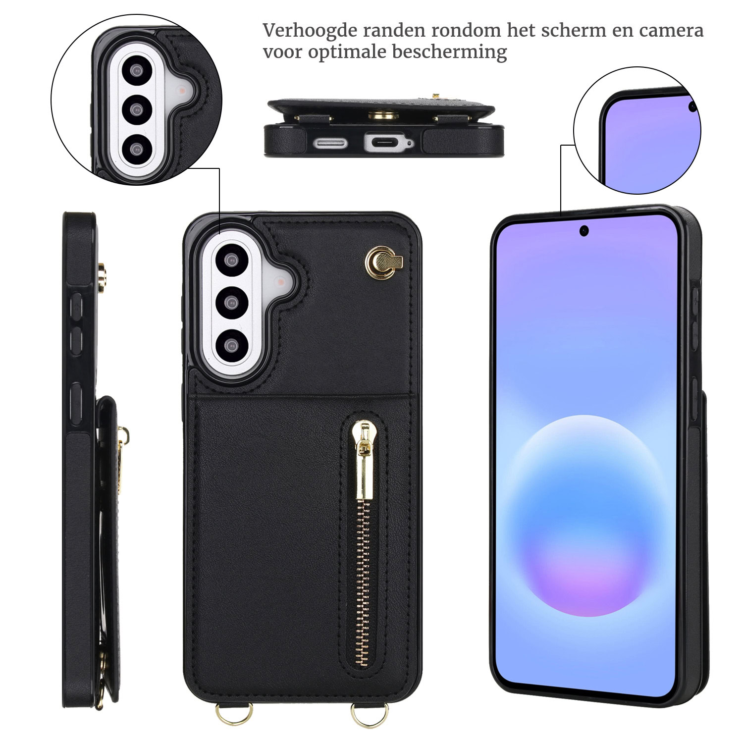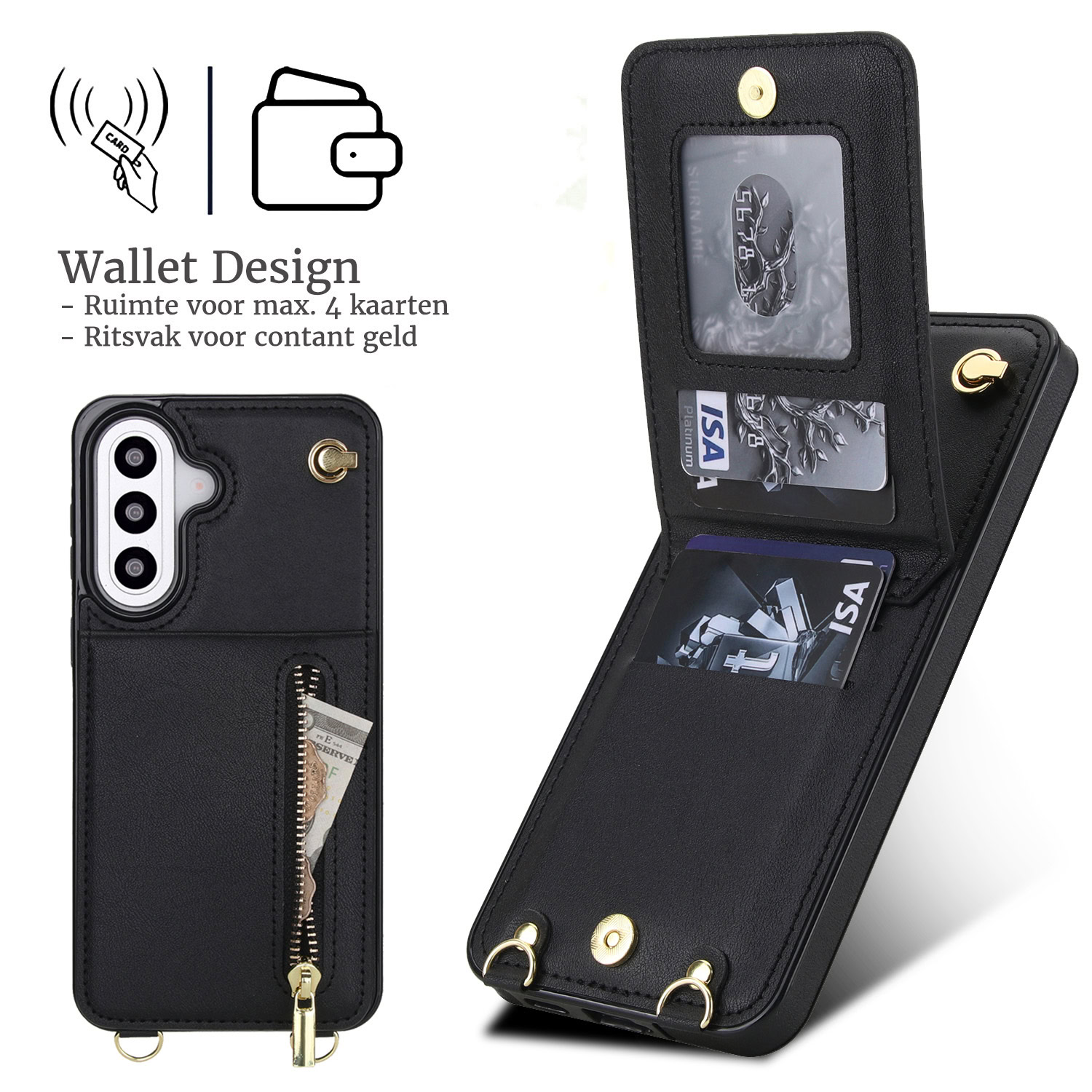 Solidenz Fashion Portemonnee hoesje met koord Samsung Galaxy A37 – Zwart