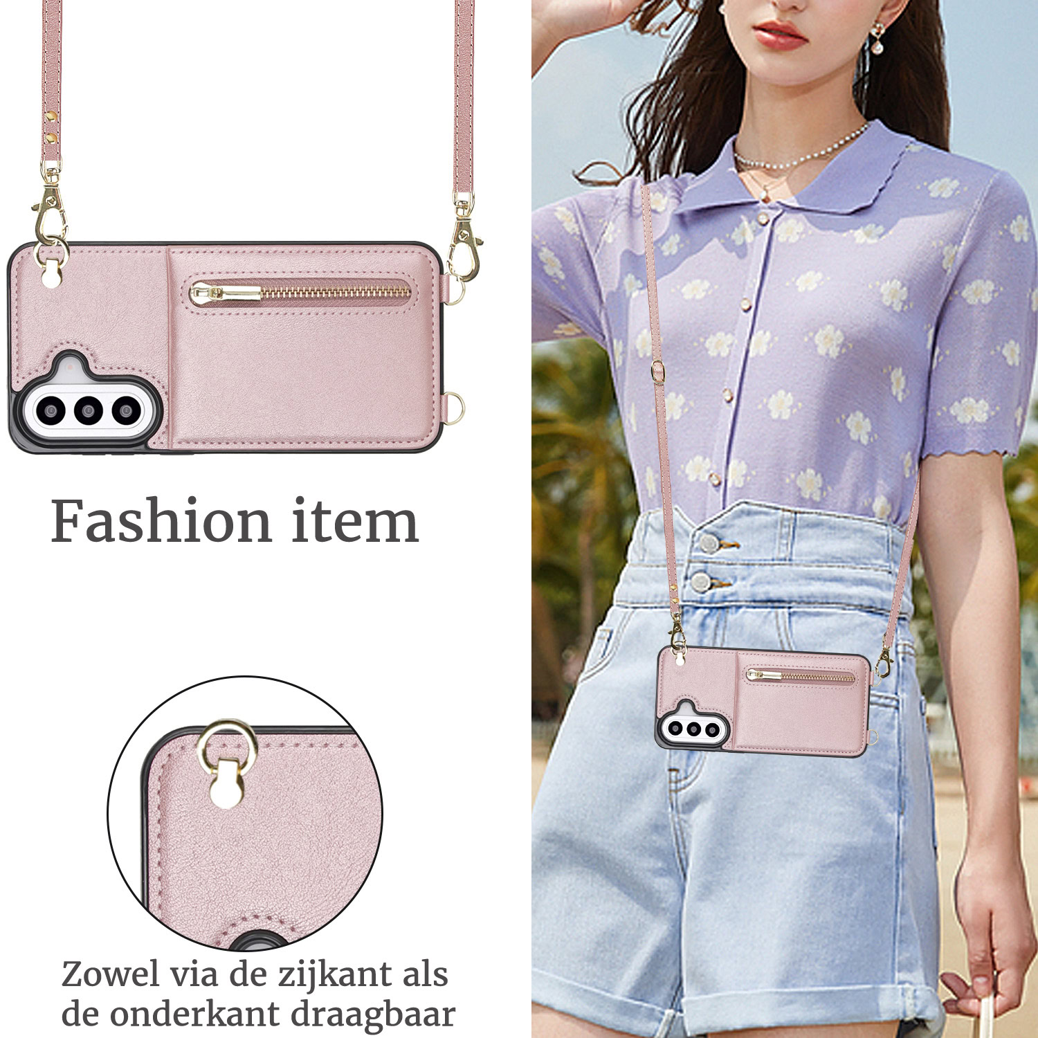 Solidenz Fashion Portemonnee hoesje met koord Samsung Galaxy A57 – Roségoud
