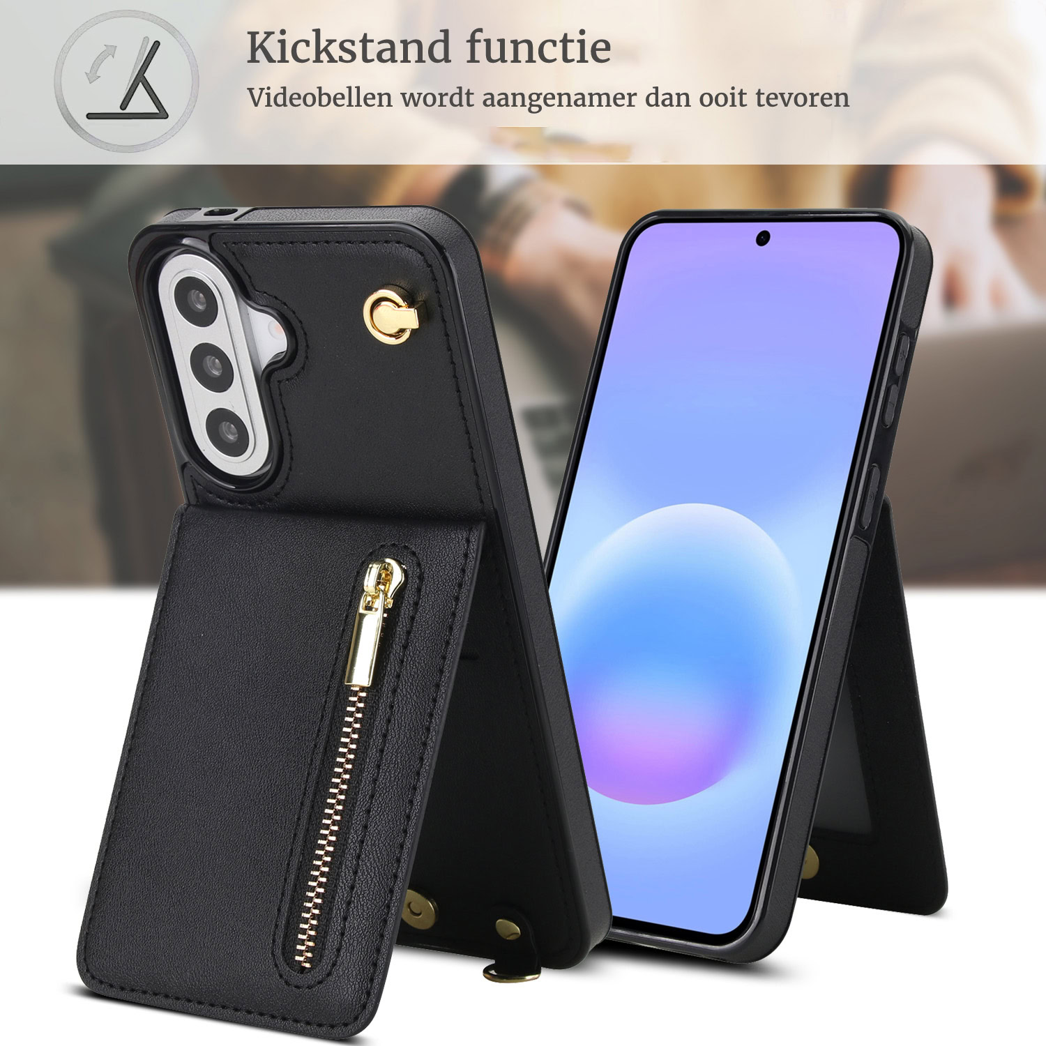 Solidenz Fashion Portemonnee hoesje met koord Samsung Galaxy A57 – Zwart