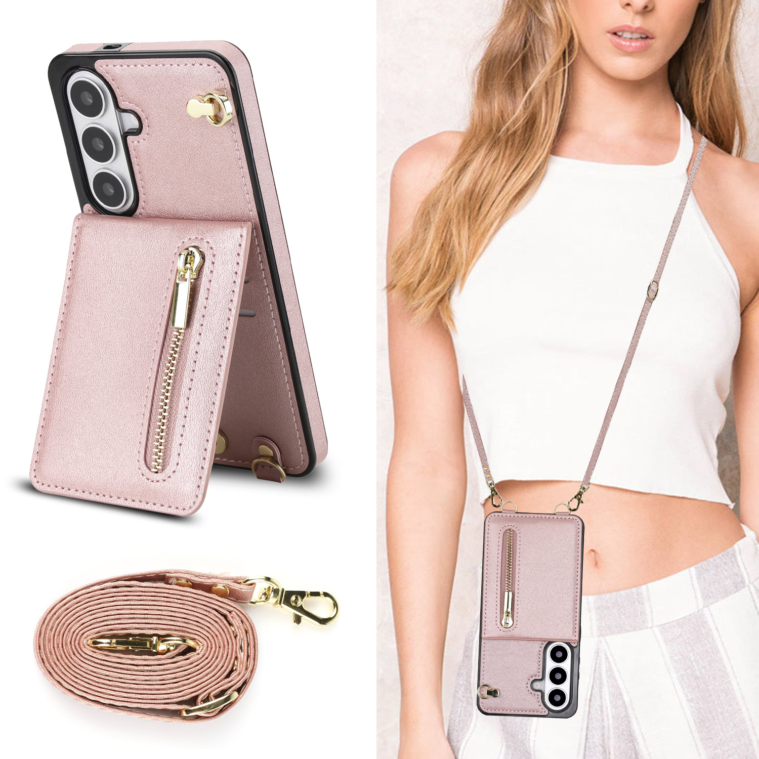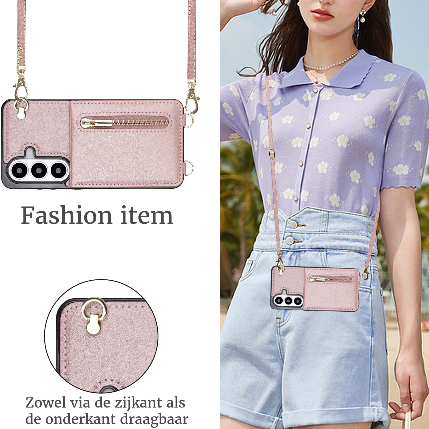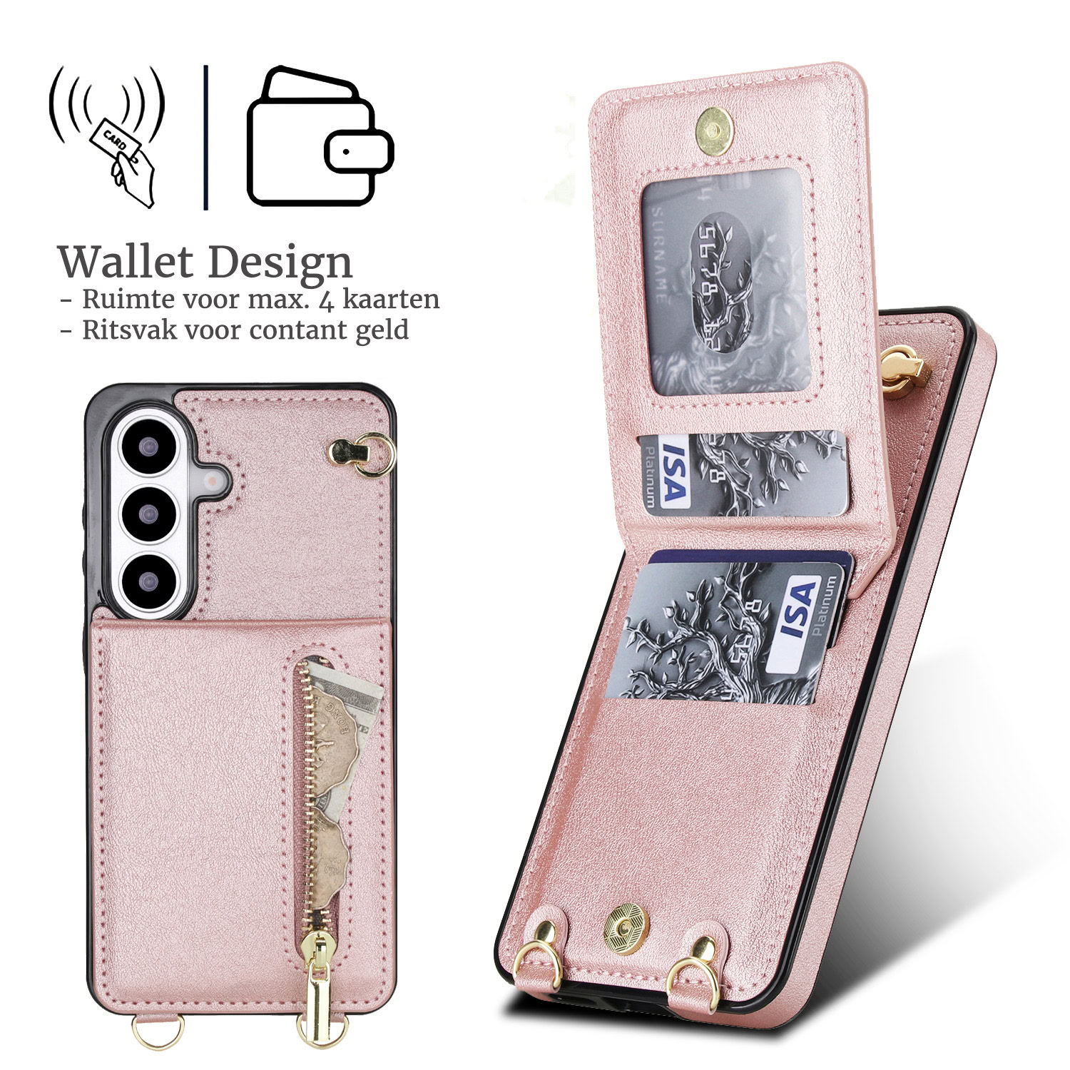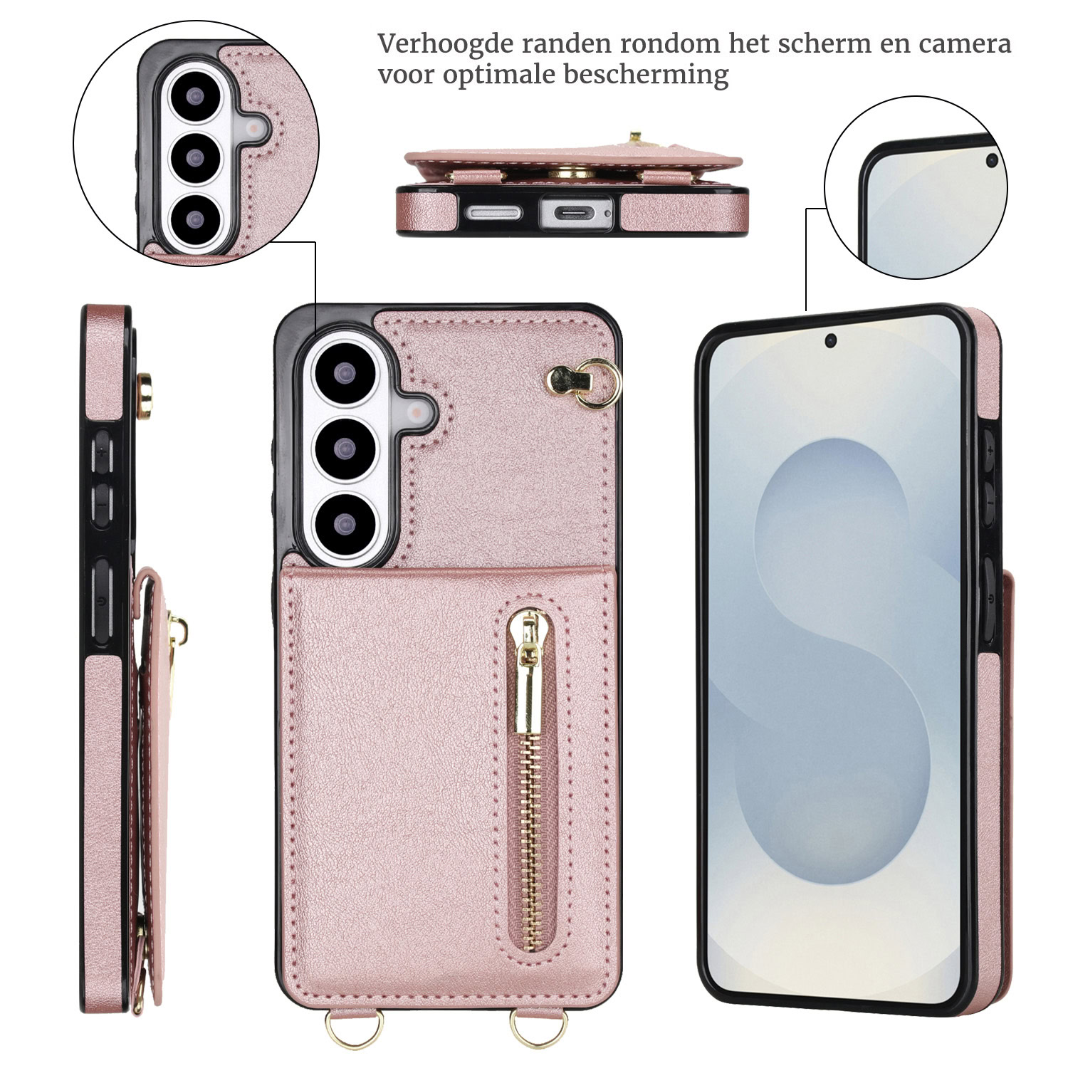 Solidenz Fashion Portemonnee hoesje met koord Samsung Galaxy S26 Plus – Roségoud