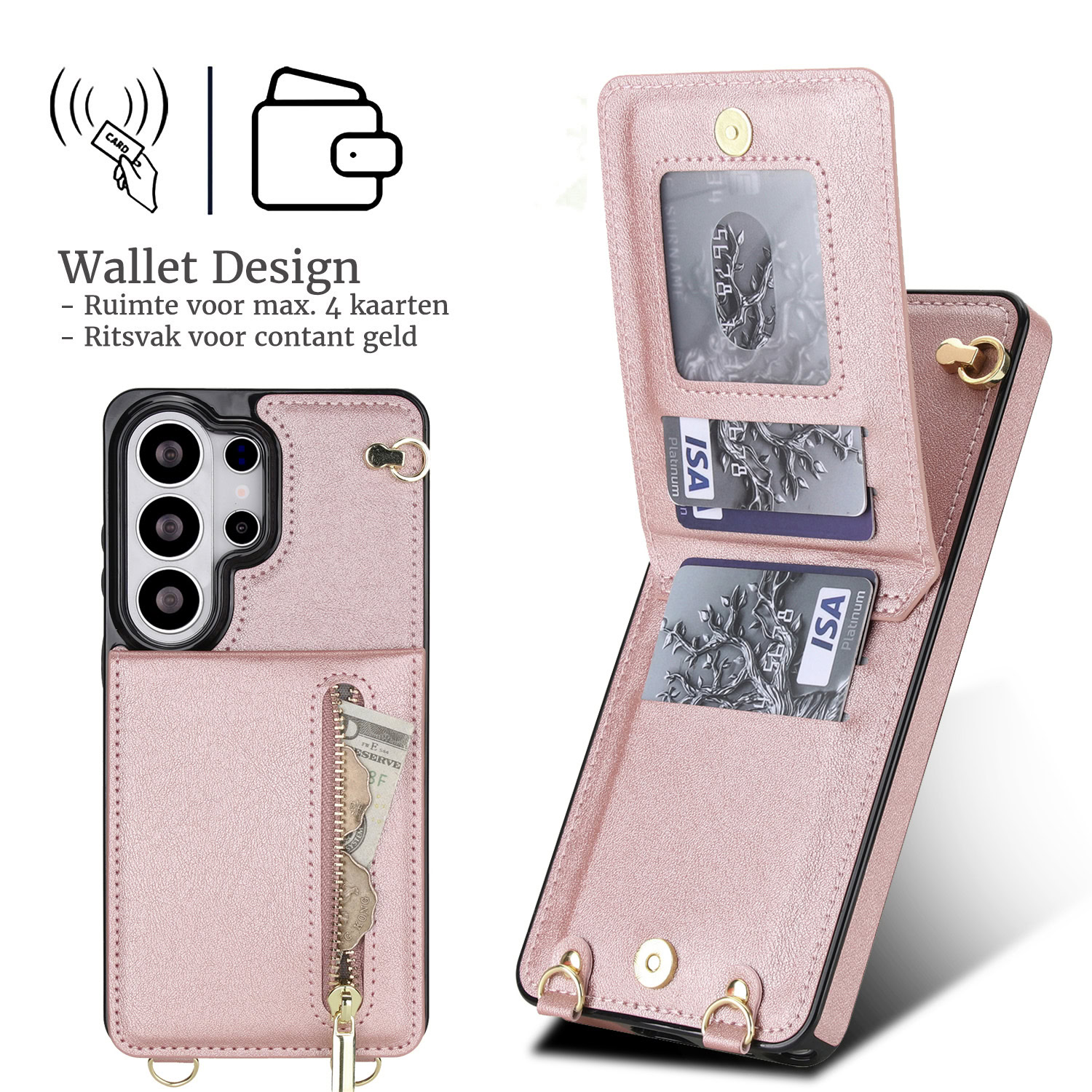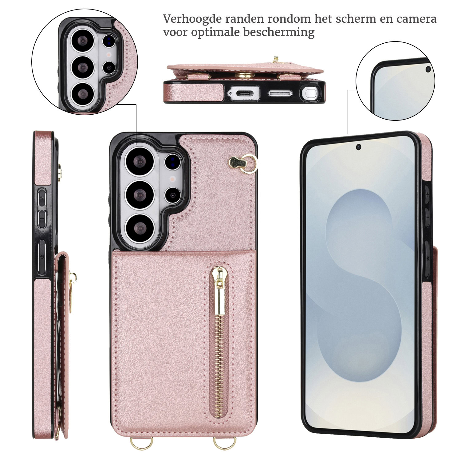 Solidenz Fashion Portemonnee hoesje met koord Samsung Galaxy S26 Ultra – Roségoud