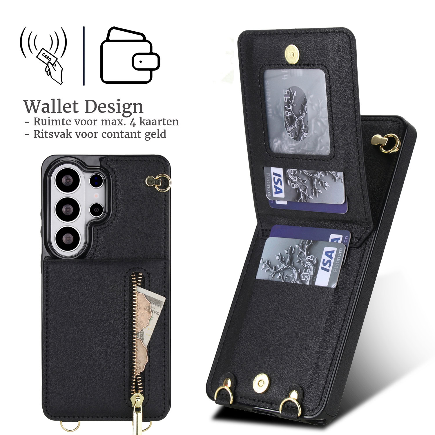 Solidenz Fashion Portemonnee hoesje met koord Samsung Galaxy S26 Ultra – Zwart