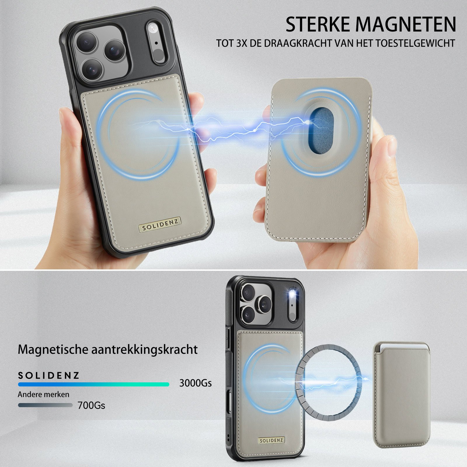 Solidenz MagSafe Wallet Backcover voor iPhone 17 Pro Max – Beige