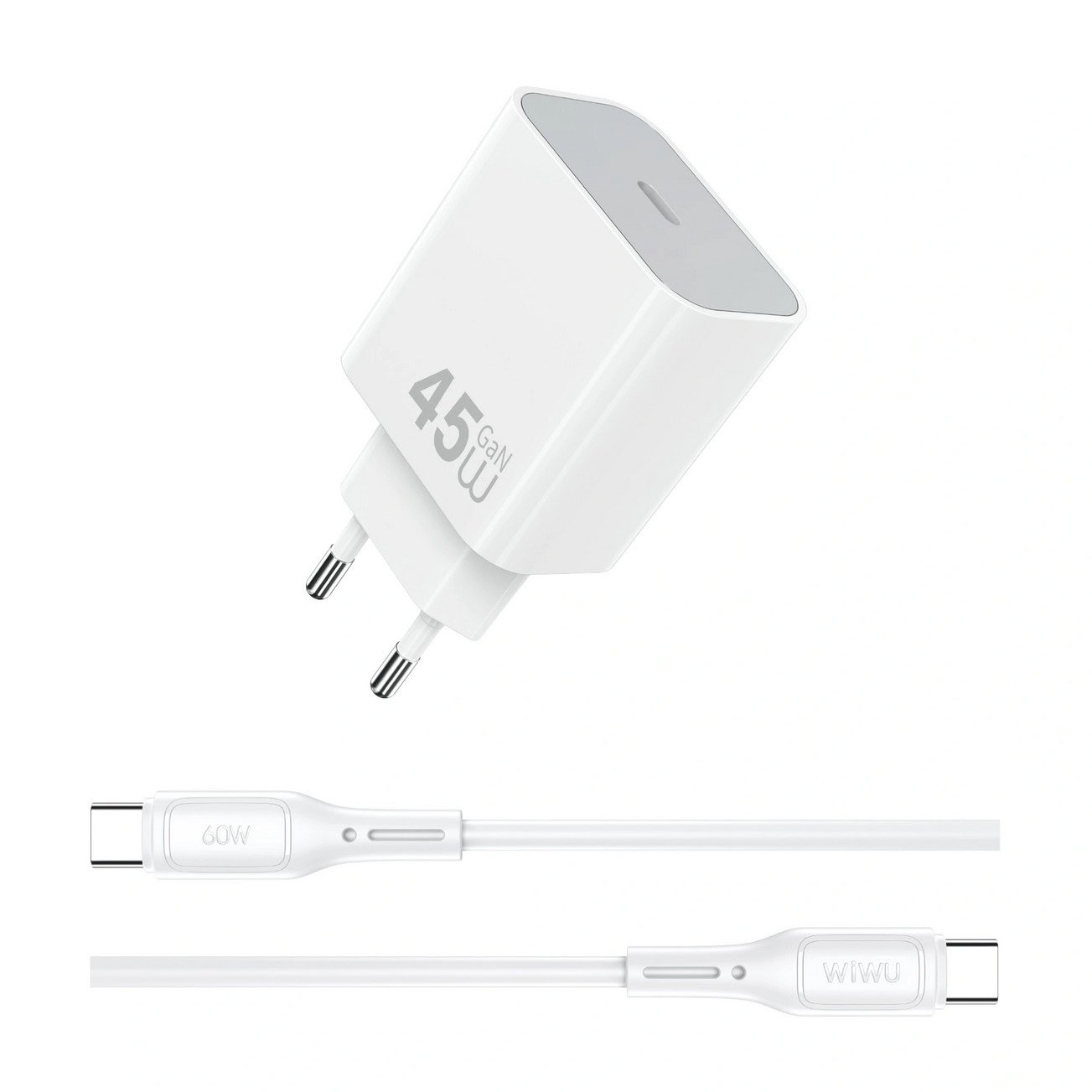 WiWU 45W snellader – USB-C oplader inclusief USB-C Kabel – Wit