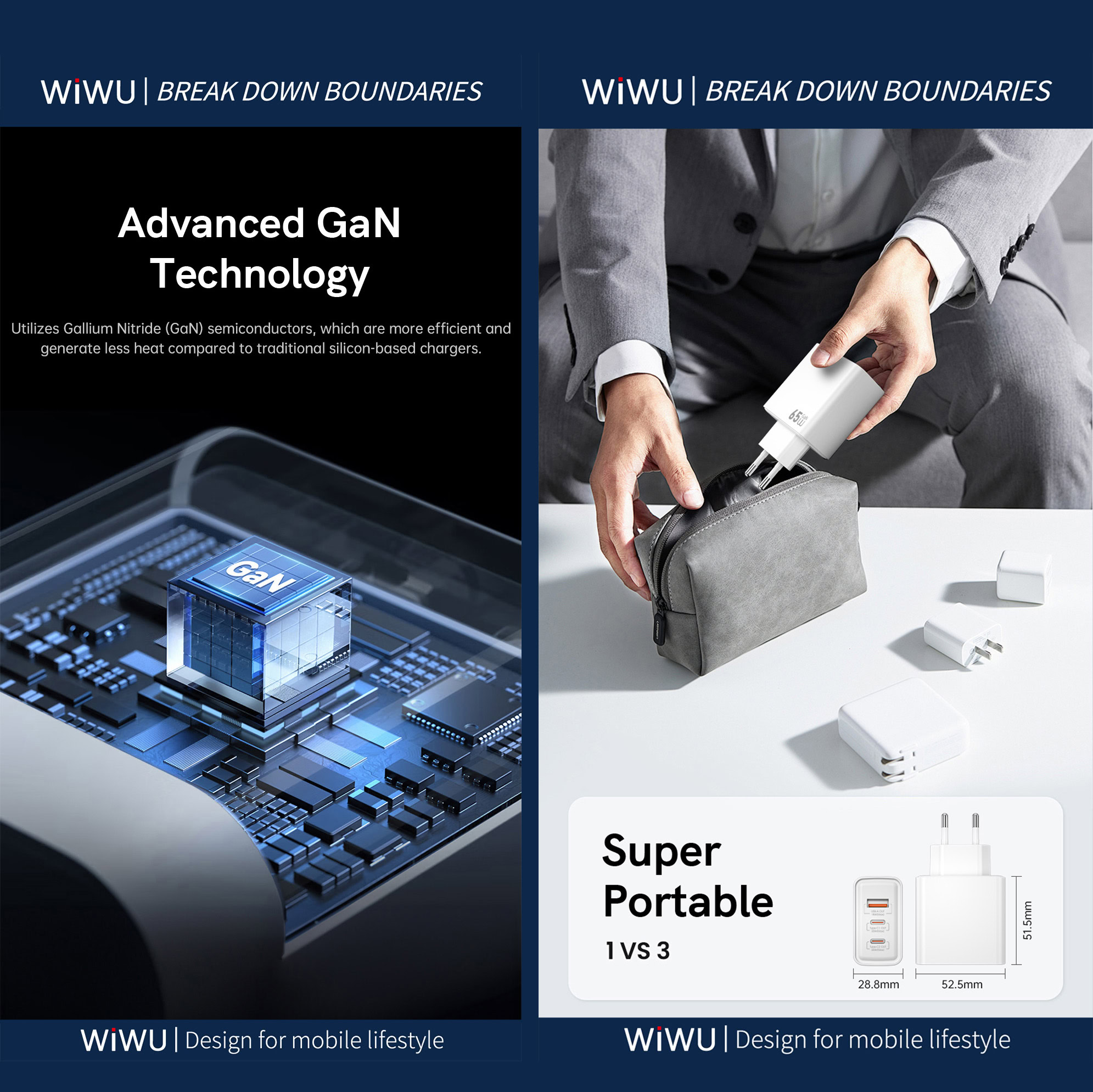 WiWU 65W snellader – Driepoorts Charger zonder Kabel – Wit