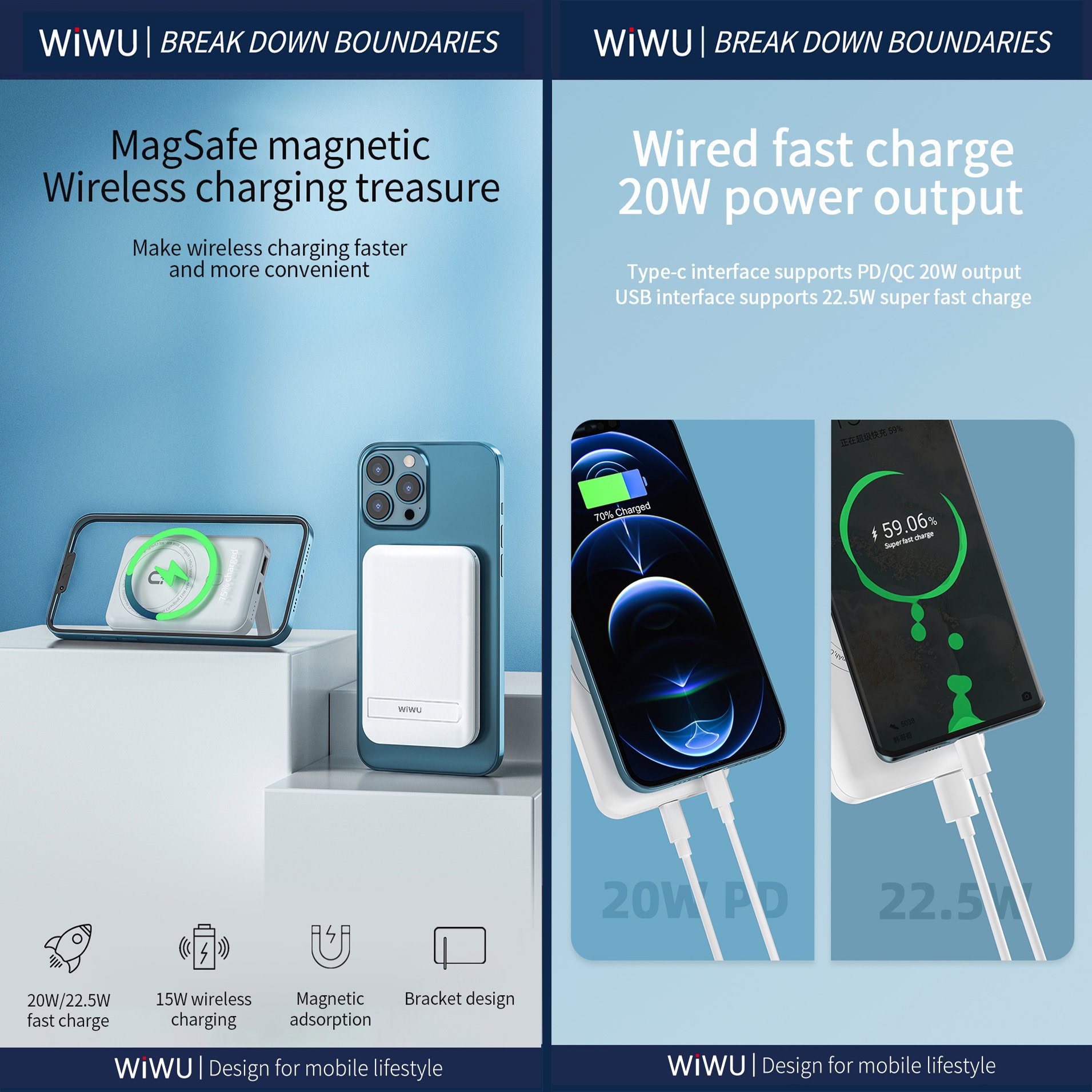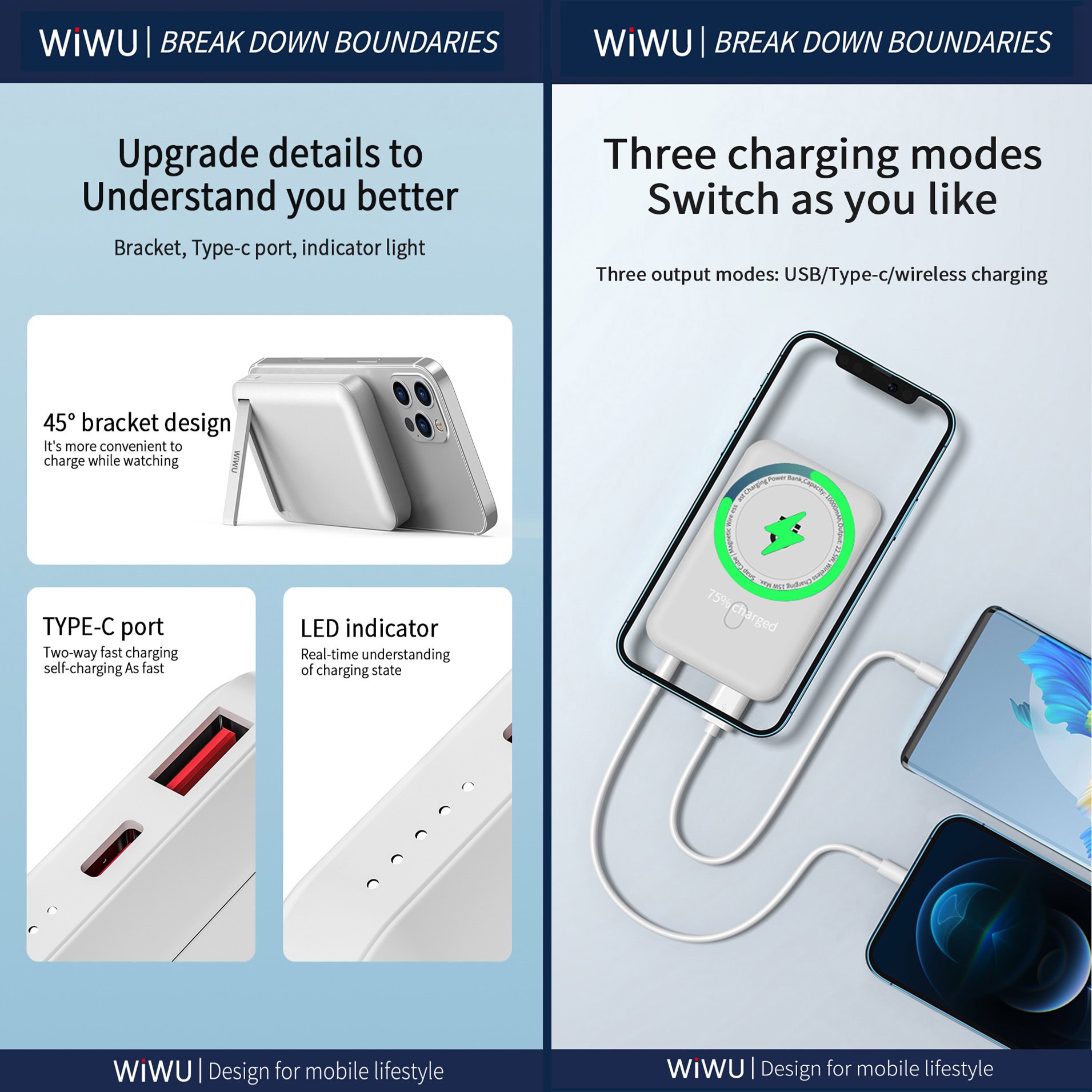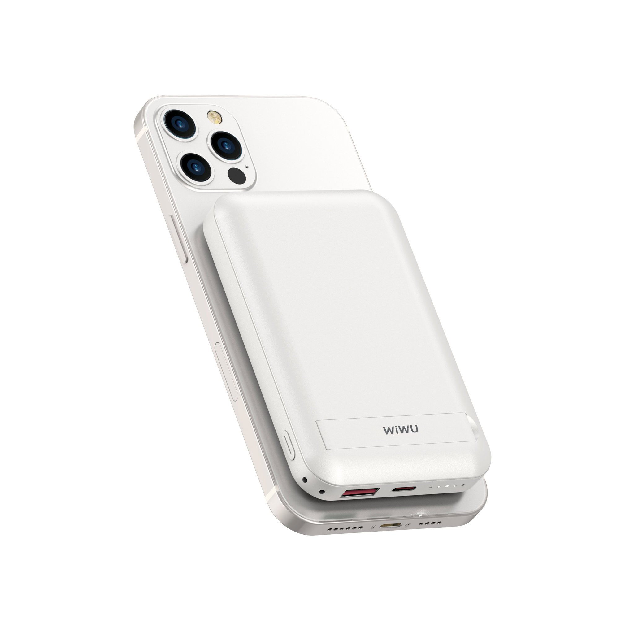 WiWU Powerbank 10000mAh – Magsafe – Type-C en USB-A ingang – met Kickstand – Wit