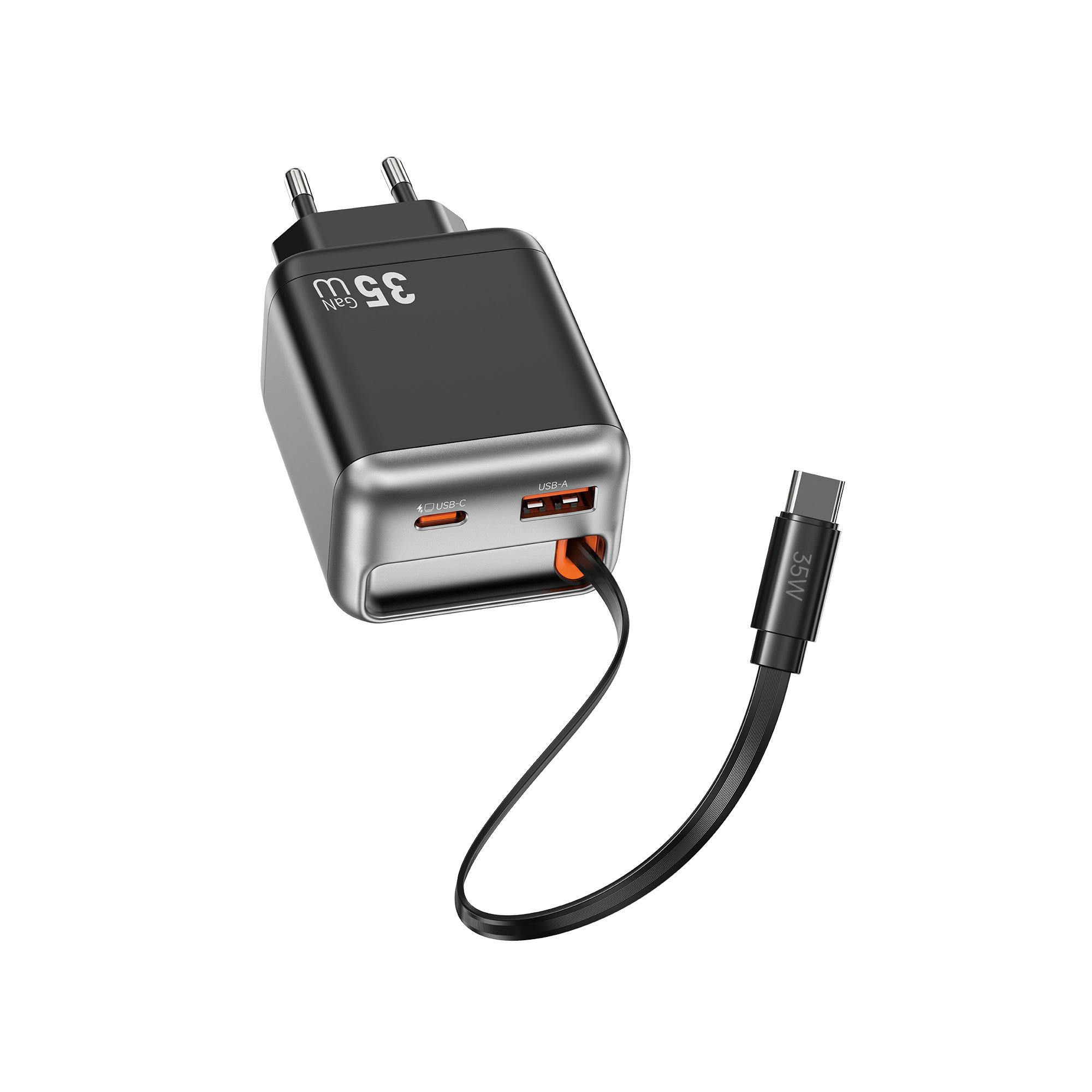 WiWU Tweepoorts Oplader Helix PD35W snellader – Inclusief intrekbare kabel 70cm – Zwart