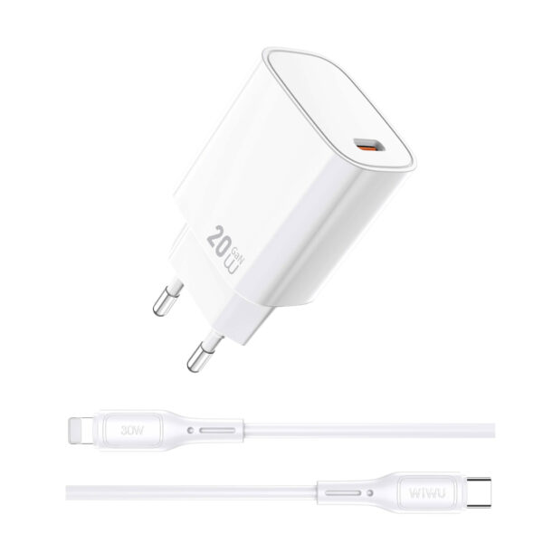 WiWU USB-C snellader 20W – Stekker inclusief USB-C naar Lightning Kabel – Wit
